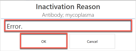 - Escriba la razón por la cual desea desactivar la orden pendiente. Una vez haya escrito la razón, presione el botón de "OK".