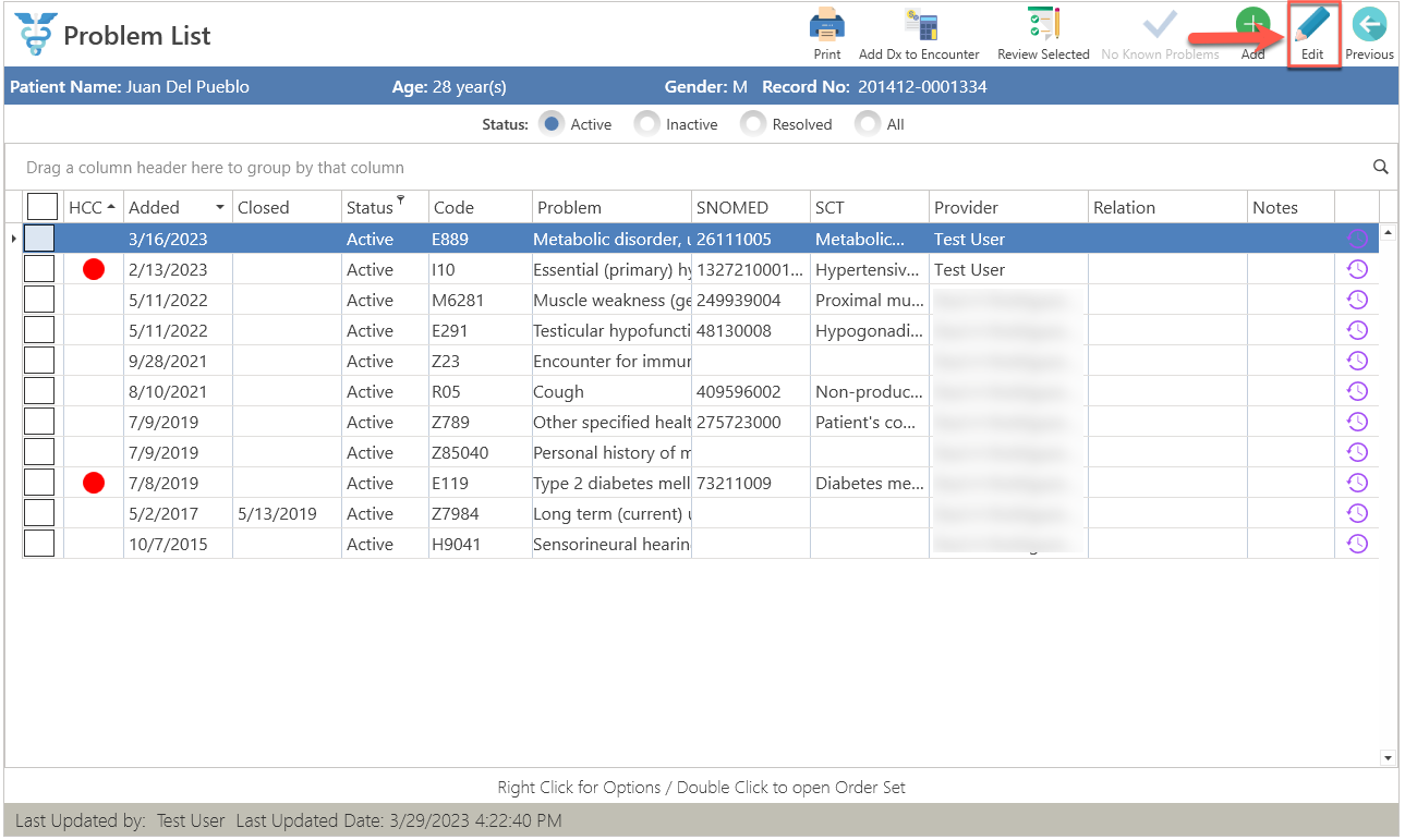 • Seleccione el diagnóstico y luego presione el botón de "Edit".