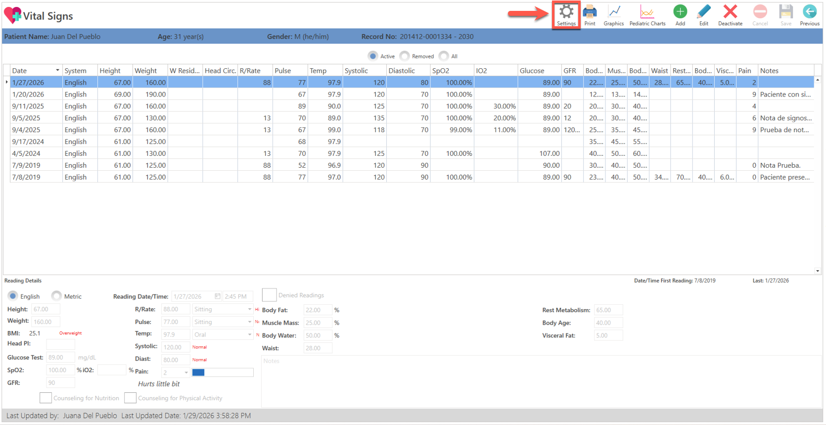 - Conociendo el área de: Settings / Clinical / Vital Signs Settings
