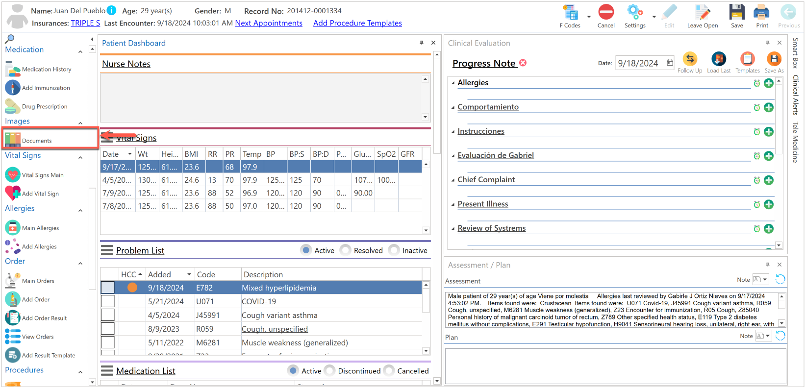 - Conociendo el área de: Advanced Progress Note / Documents (Images)
