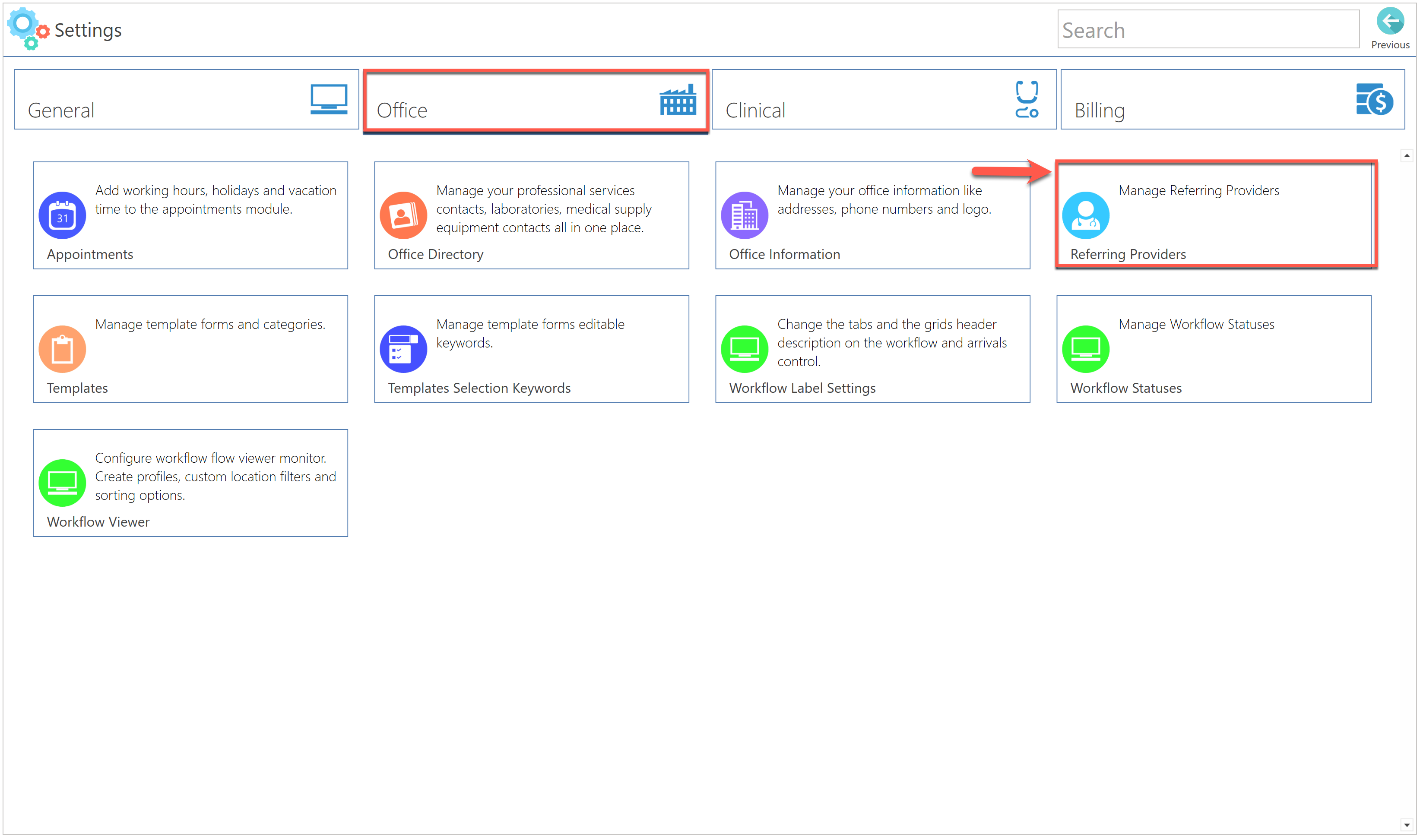 - Presione el botón de "Office" y luego, seleccione la opción de "Referring Providers".