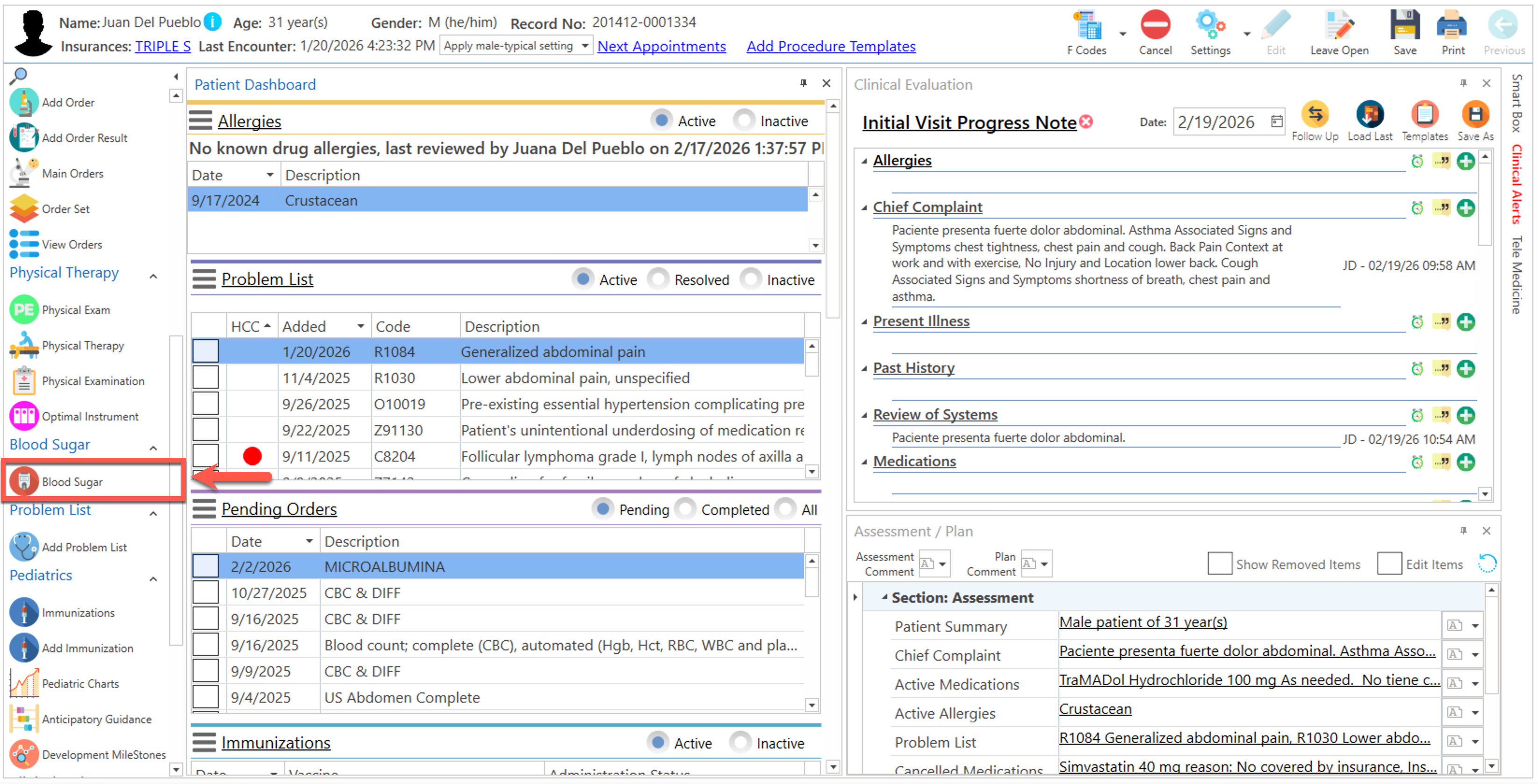 - Conociendo el área de: Advanced Progress Note / Blood Sugar