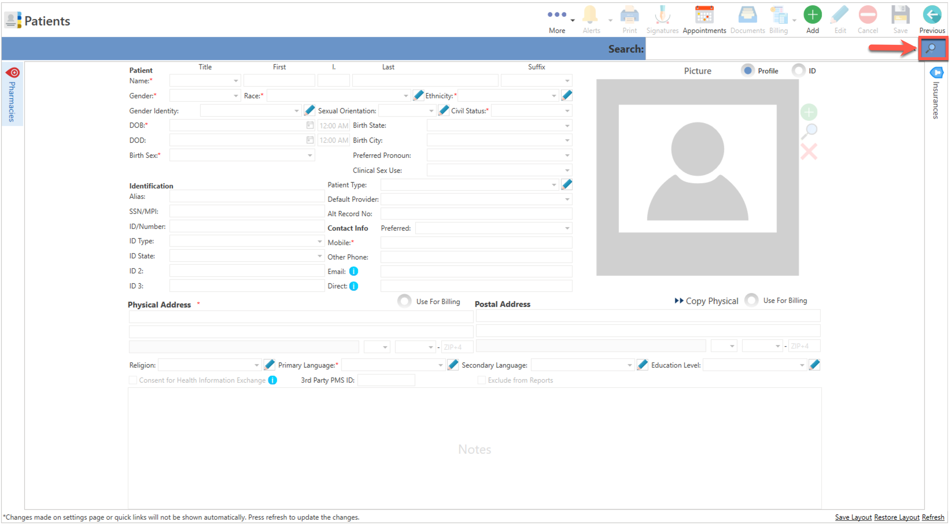 - Si desea ver algún récord de paciente inactivo, presione el botón de "Search", en la pantalla de "Patients Details".