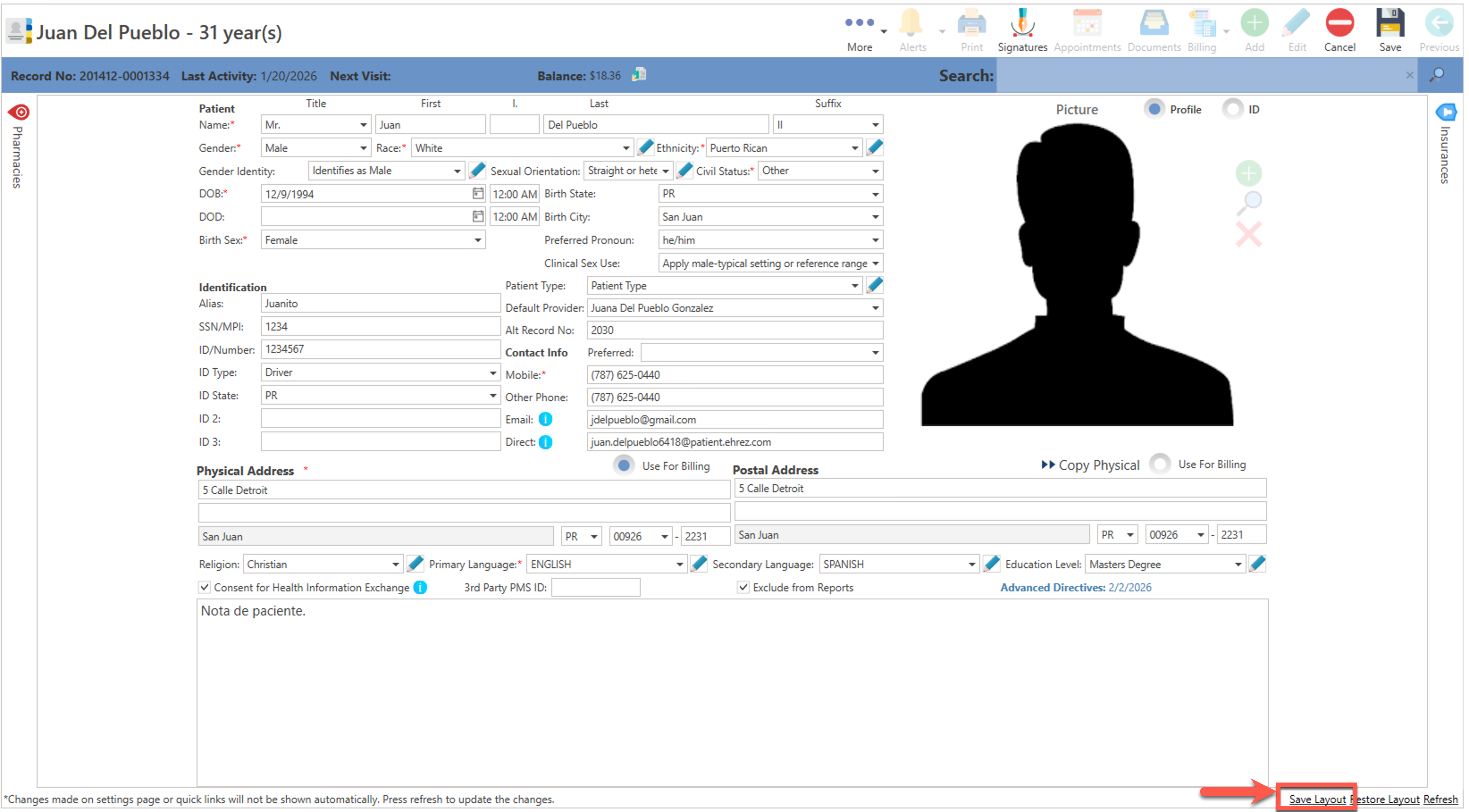 - Conociendo el área de: Patients / Save Layout