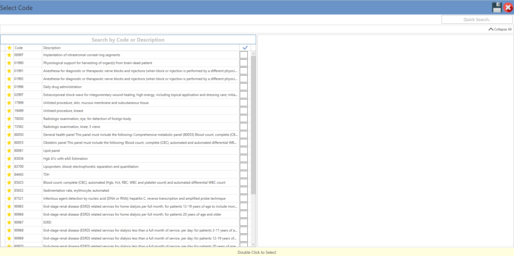 Note: If the user adding a procedure is in the Nurses group, a provider selection screen will display to select the provider that will perform the procedure. Also, if a template is attached to the procedure, the template will be displayed on the viewer on the right side of the screen.