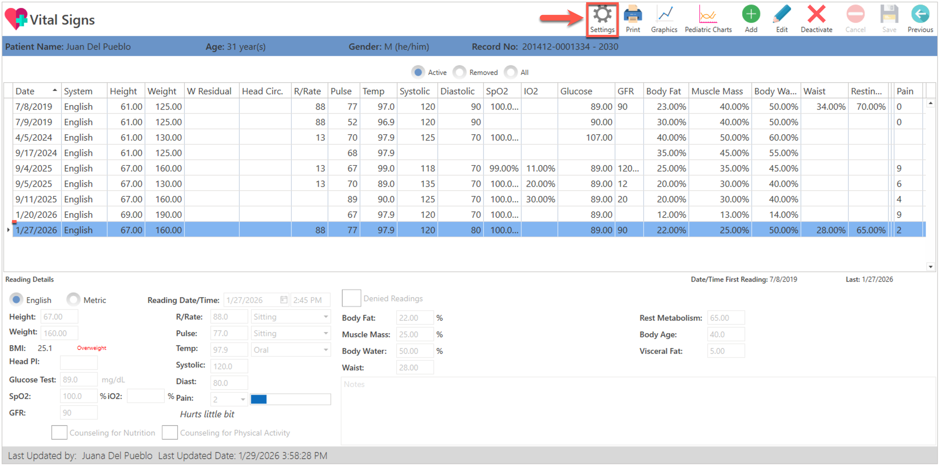 - Conociendo el área de: Advanced Progress Note / Vital Signs / Settings
