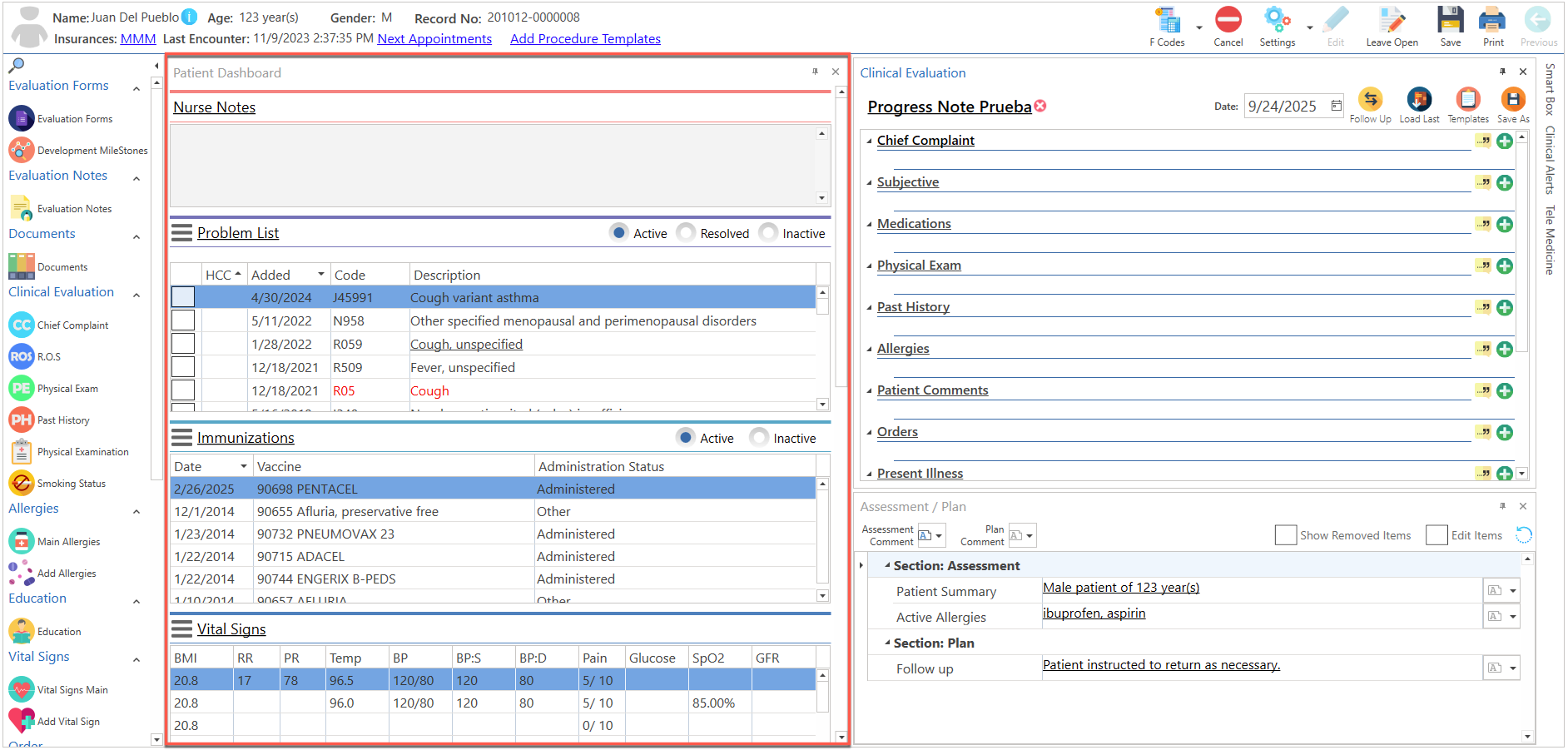- Seleccione el paciente desde cualquier sección de la pantalla de "Clinical Records".