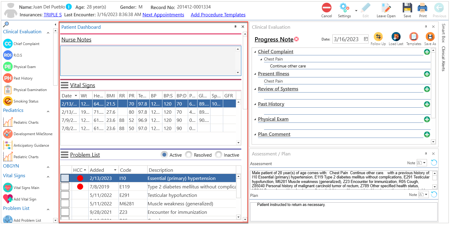 - Current Sections: The sections and their sequence displayed on the Patient Dashboard section of the Advanced Progress Note screen are as follows.