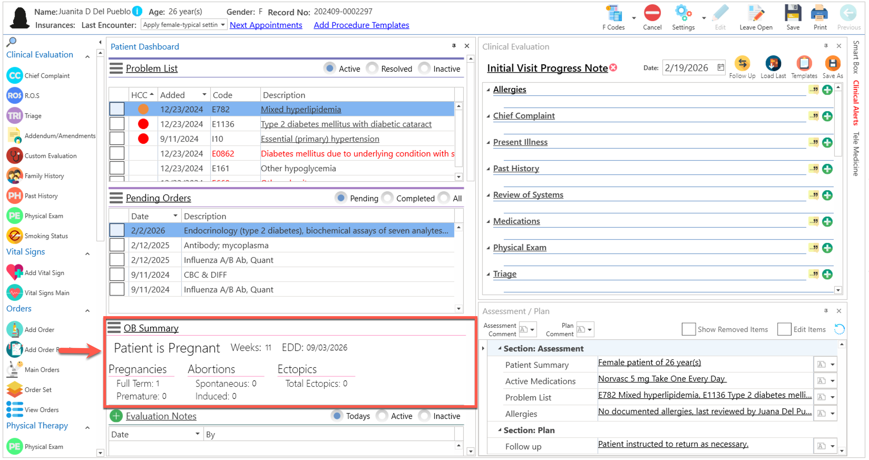 - Así se verá desplegado, en la pantalla de "Advanced Progress Note".