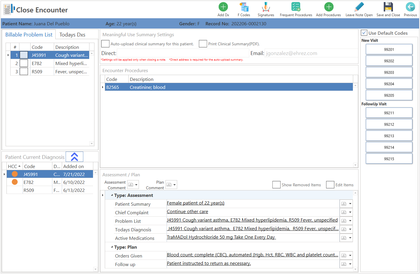 • Note: To configure frequent codes, go to Settings > General > Staff & Providers, select the desired provider, and click on the Close Encounter Code Settings button.