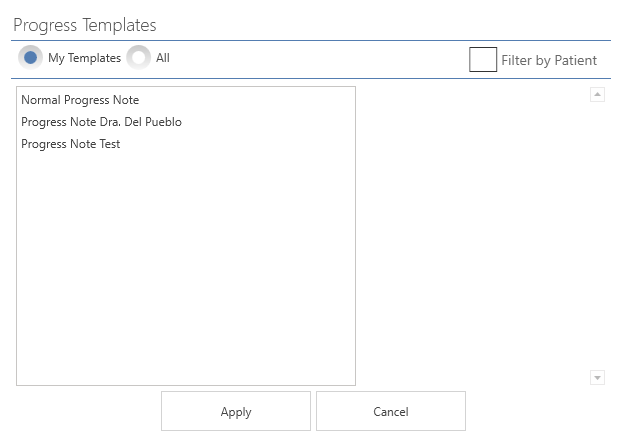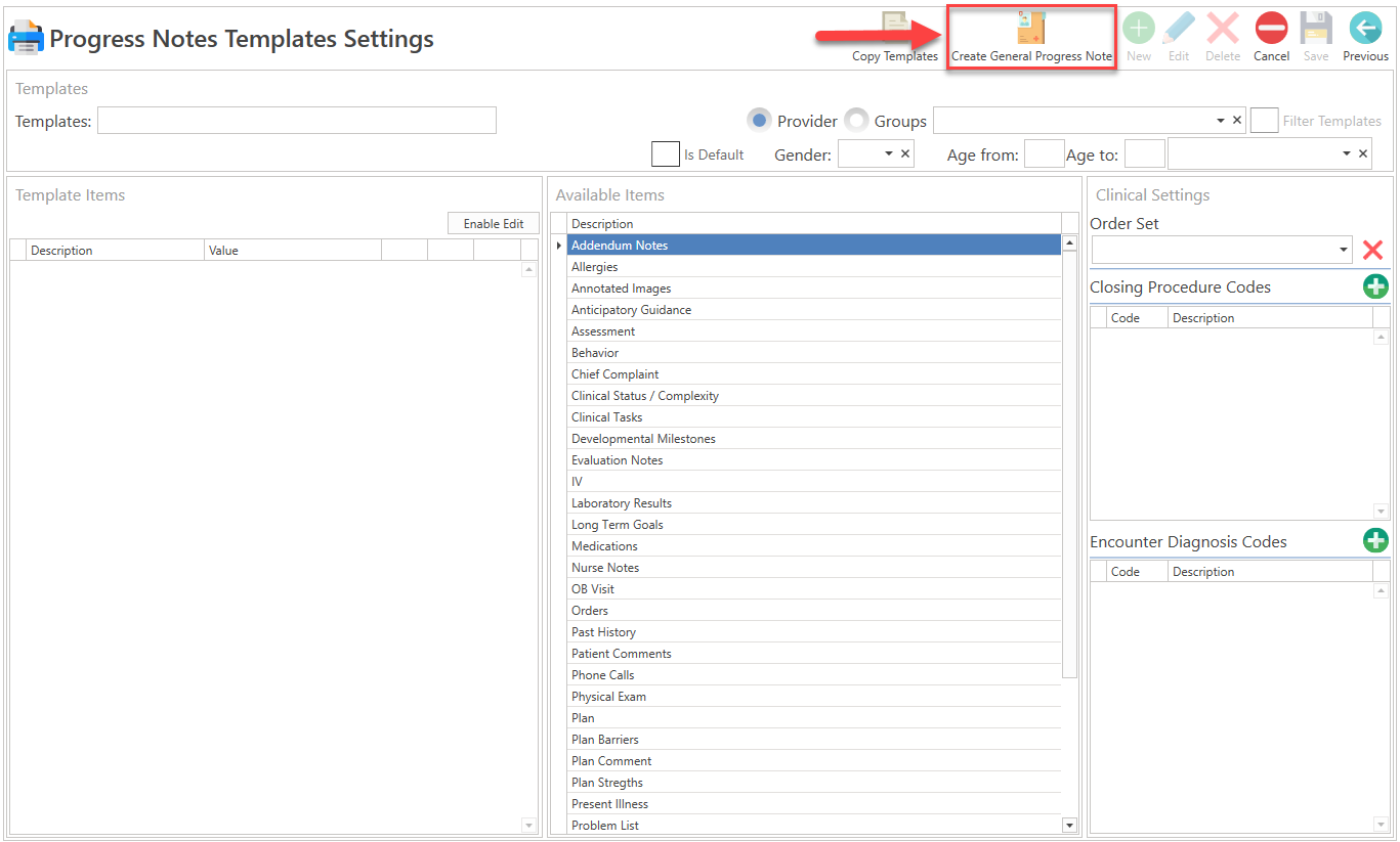 - Gender: Select the gender, which you want the progress note template to be displayed.