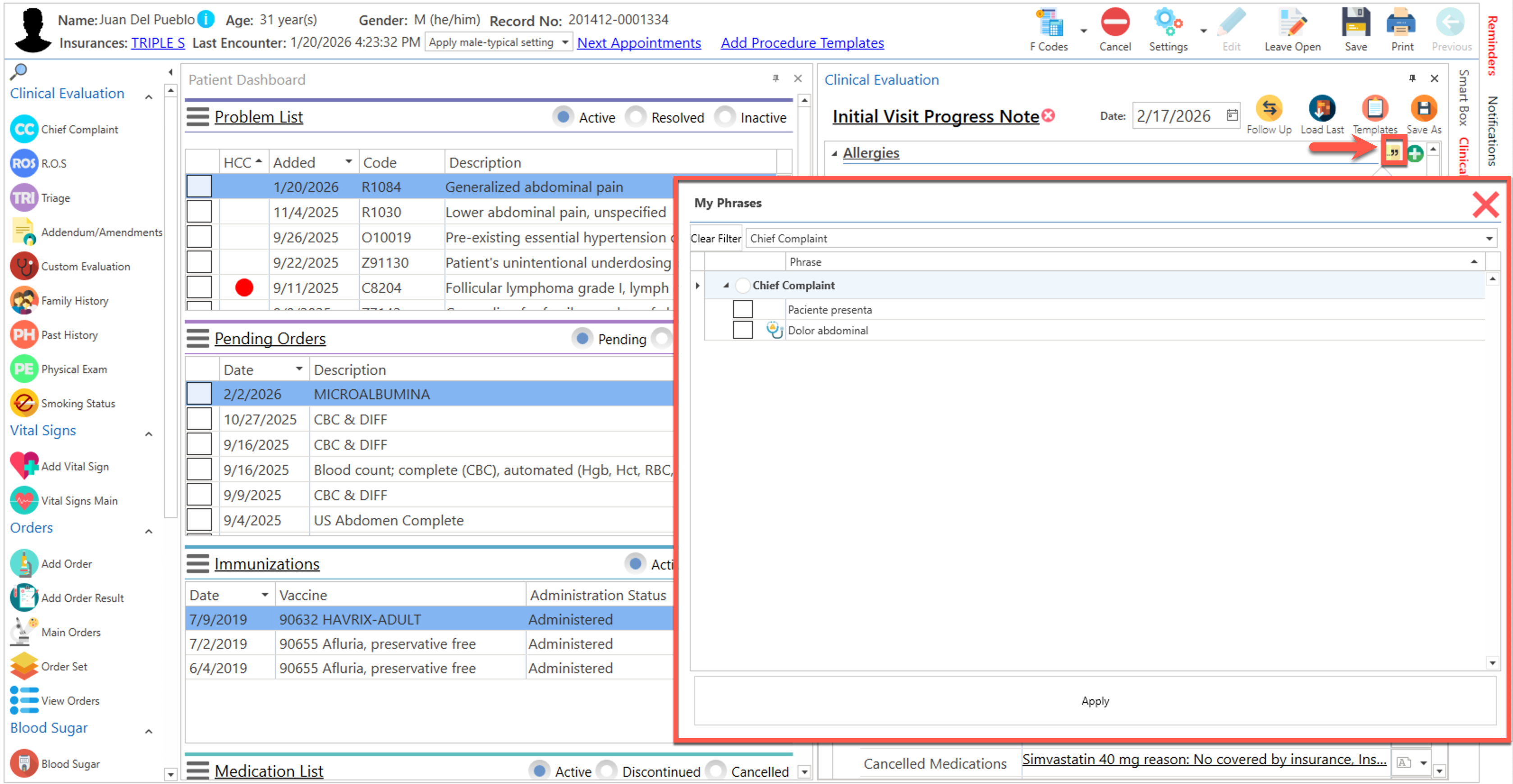 - Preguntas Frecuentes: Advanced Progress Note / Settings / Phrases Settings