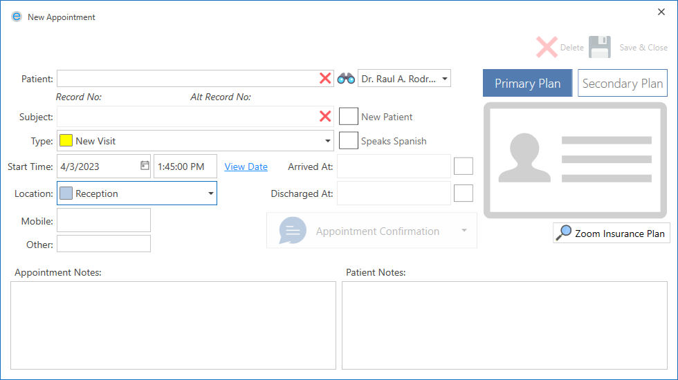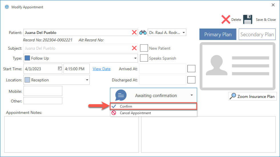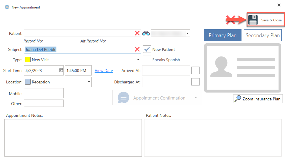 After confirming the appointment, click the Save & Close button.