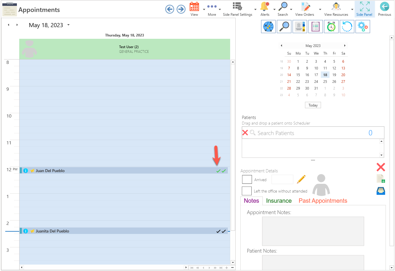 The first checkmark will automatically turn green to indicate that the patient has confirmed the appointment.