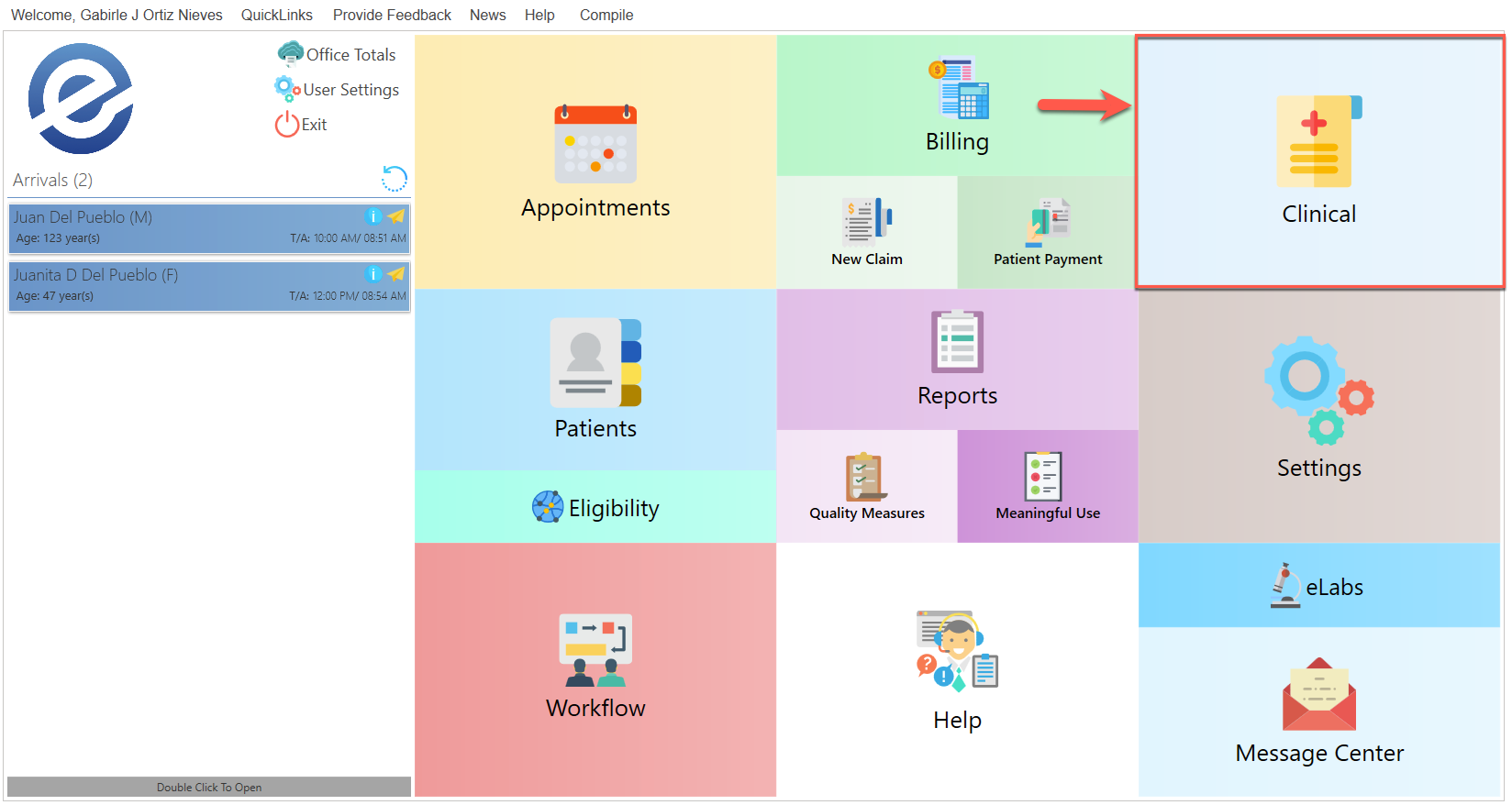 - En el menú principal, presione el botón de "Clinical".