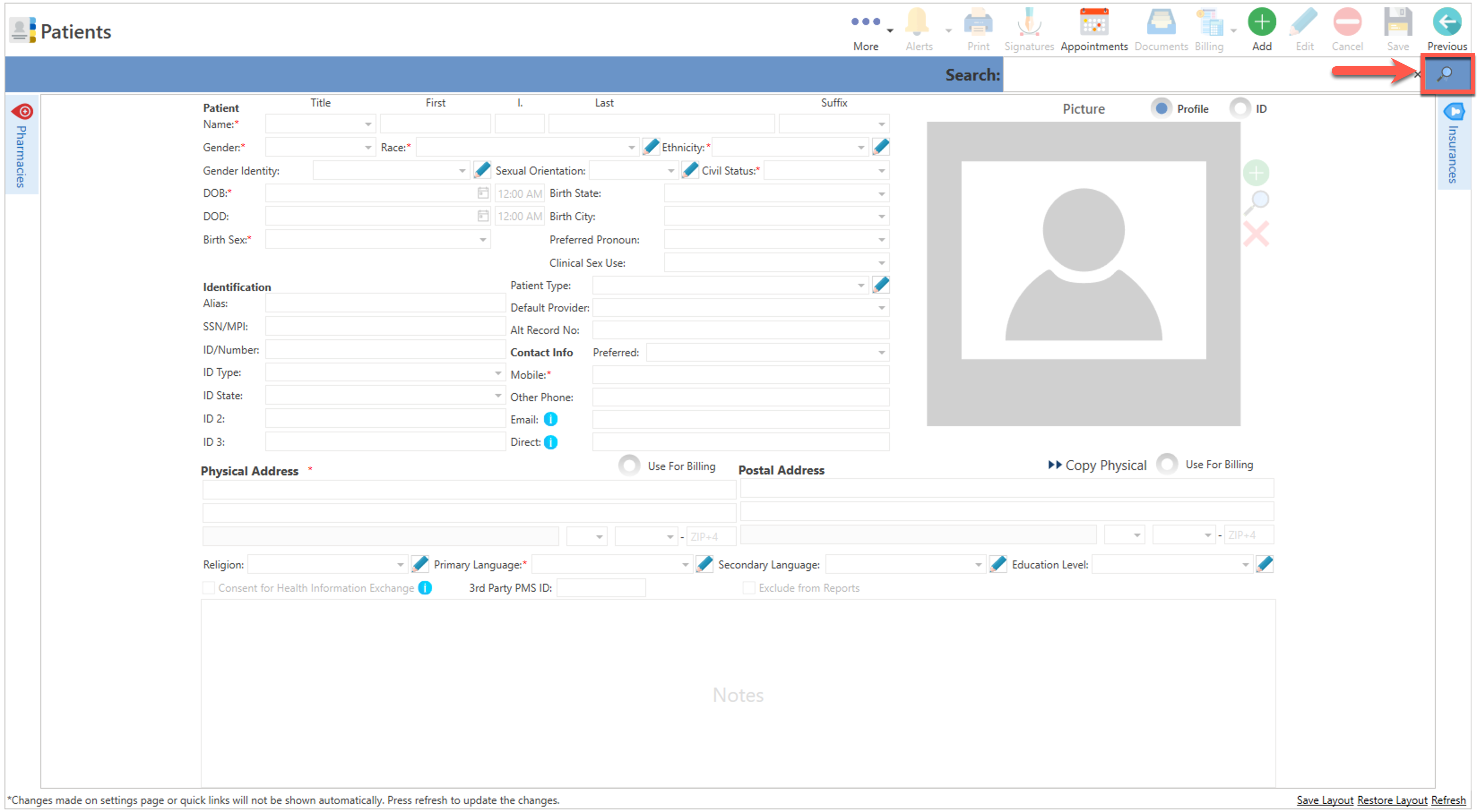 - Presione el botón de "Patient Details", localizado en la sección del "Side Panel", en la pantalla de "Appointments".