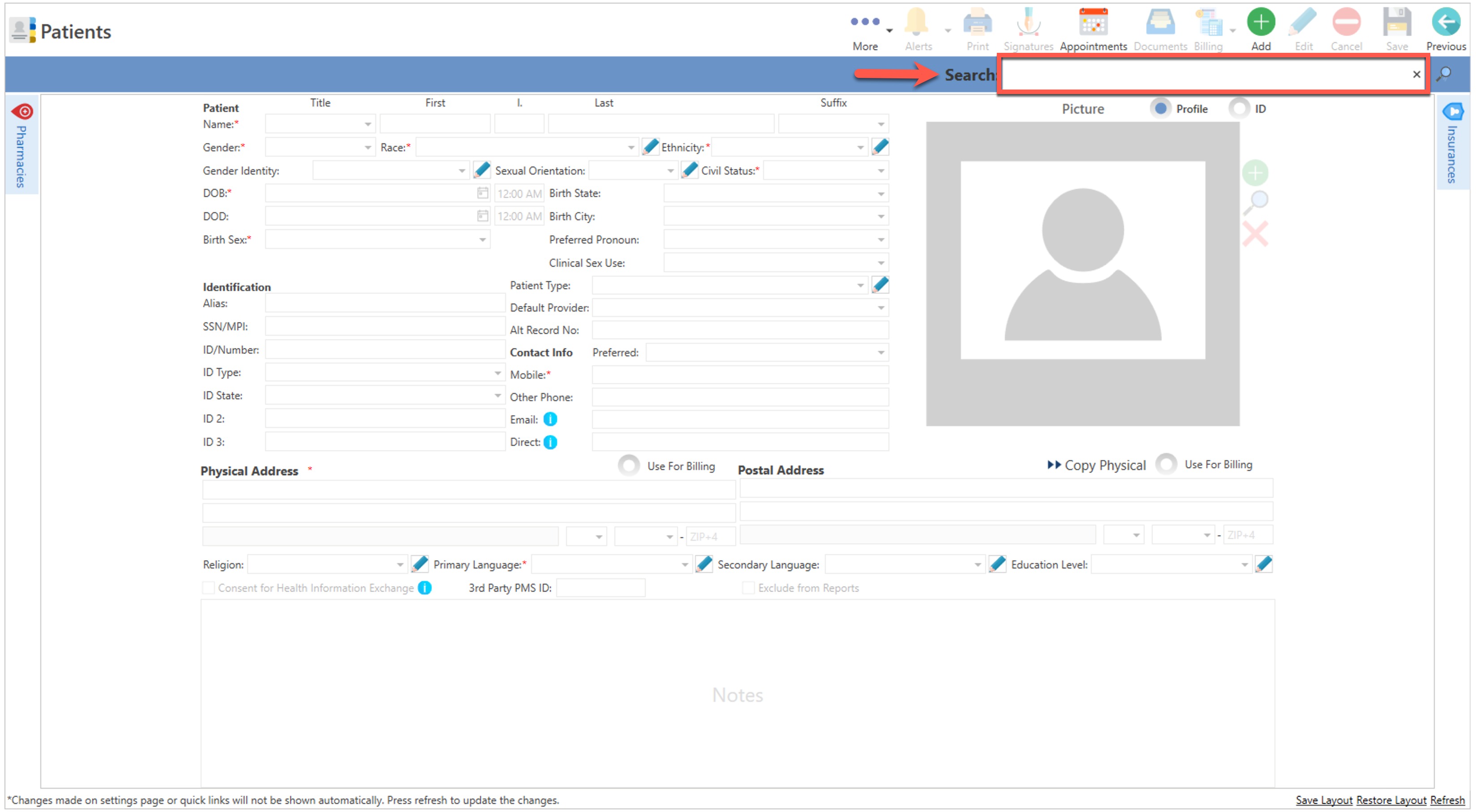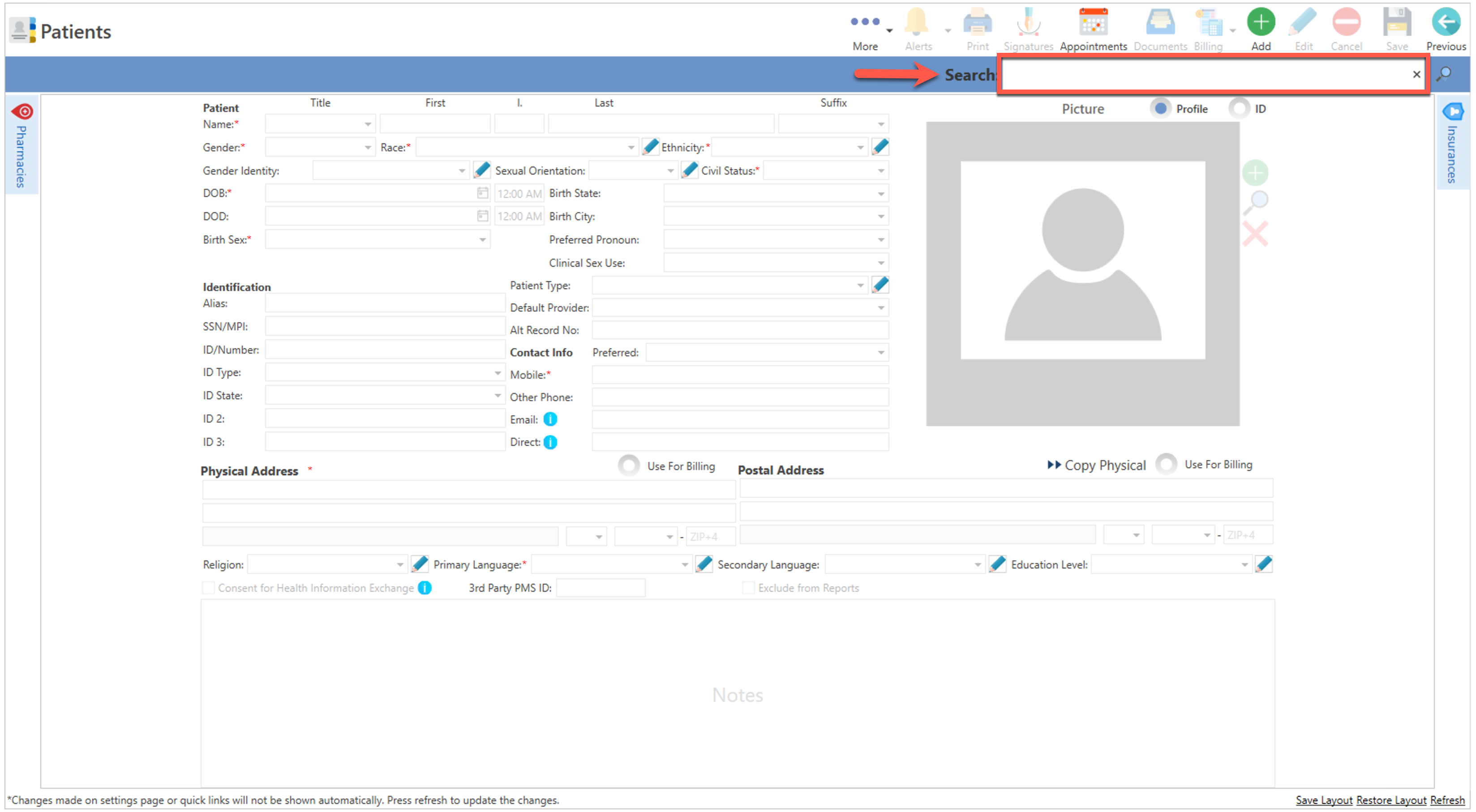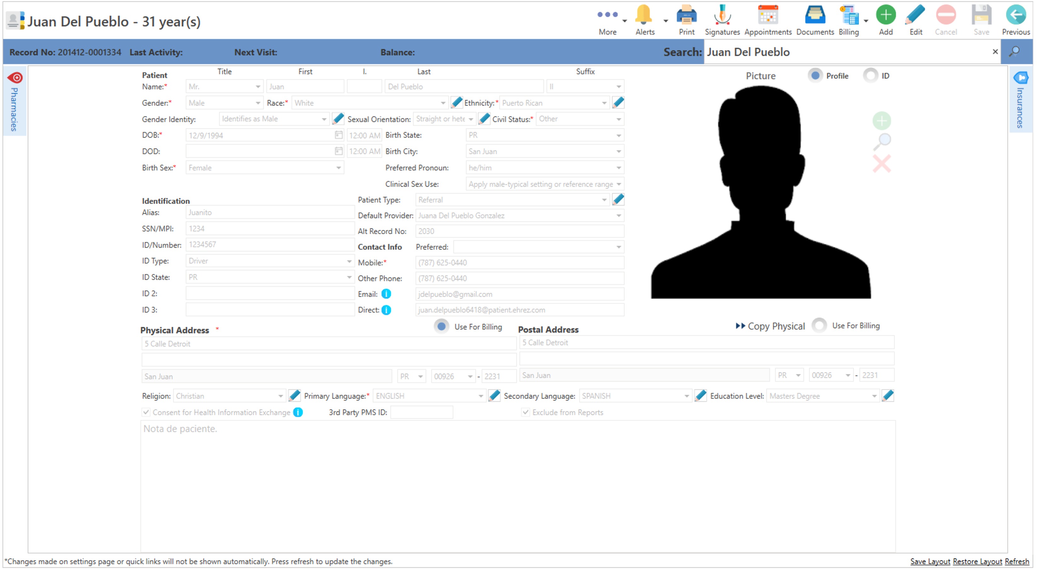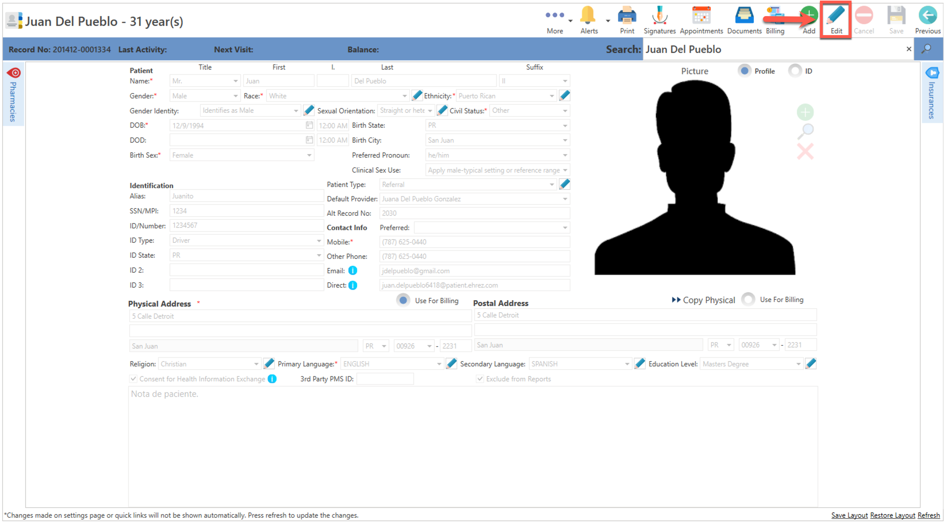- Realice todas las modificaciones correspondientes al récord del paciente, una vez completado, presione el botón de "Save", localizado en la parte superior de la pantalla.