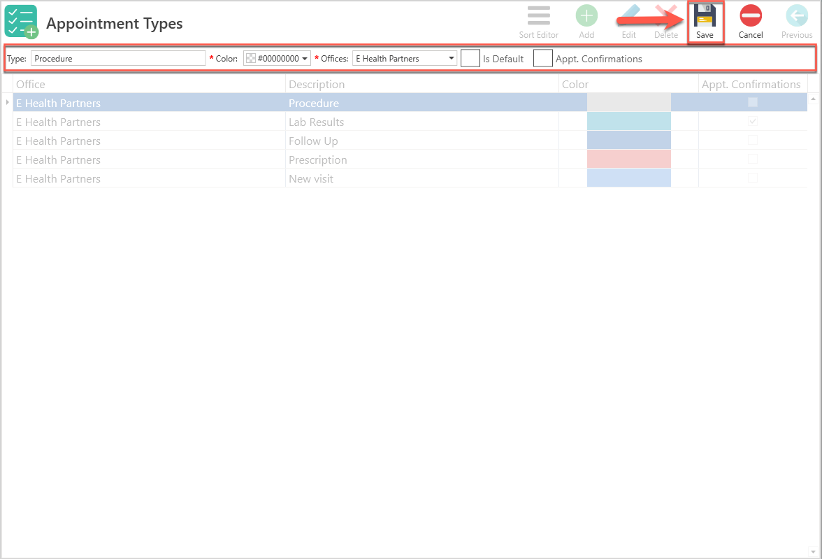 - After editing the appointment type, click the Save button located at the top of the screen.