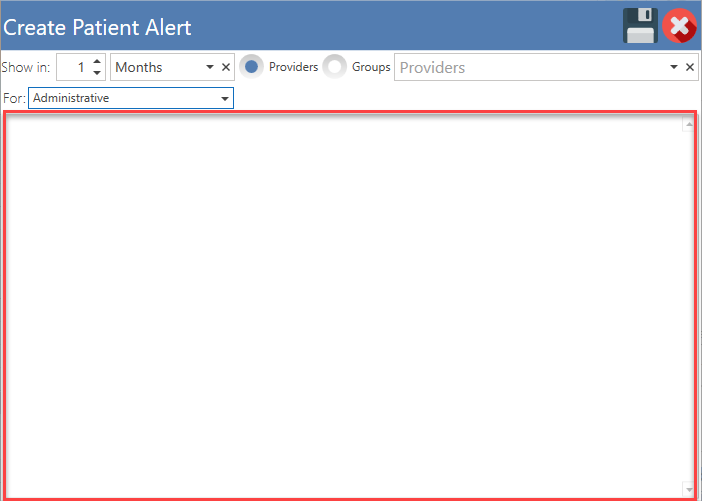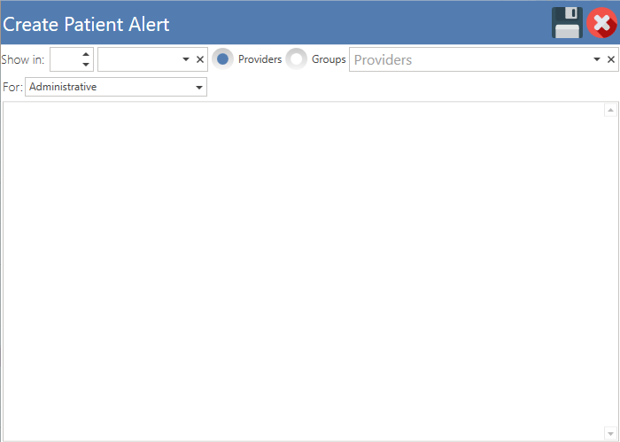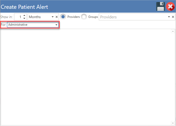 - Choose whether the alert is for administrative or clinical purposes.