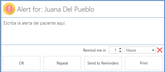 - Click the Send to Reminders button to assign the alert to the Reminders section.