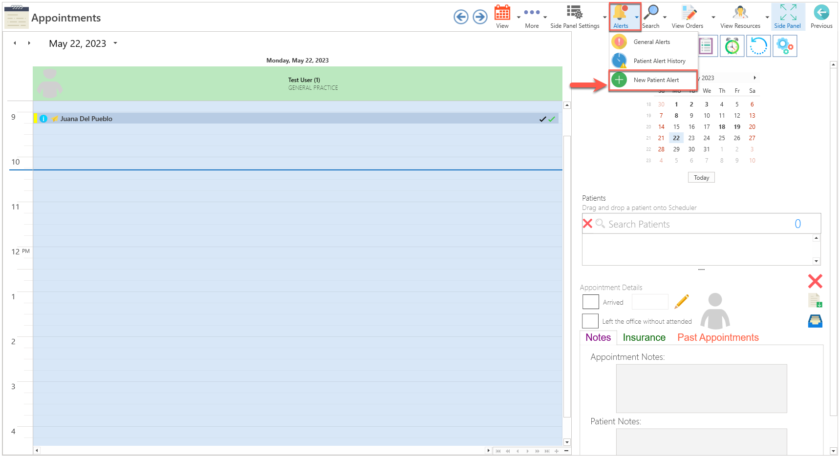 - Learn More About: Appointments / Alerts / New Patient Alert