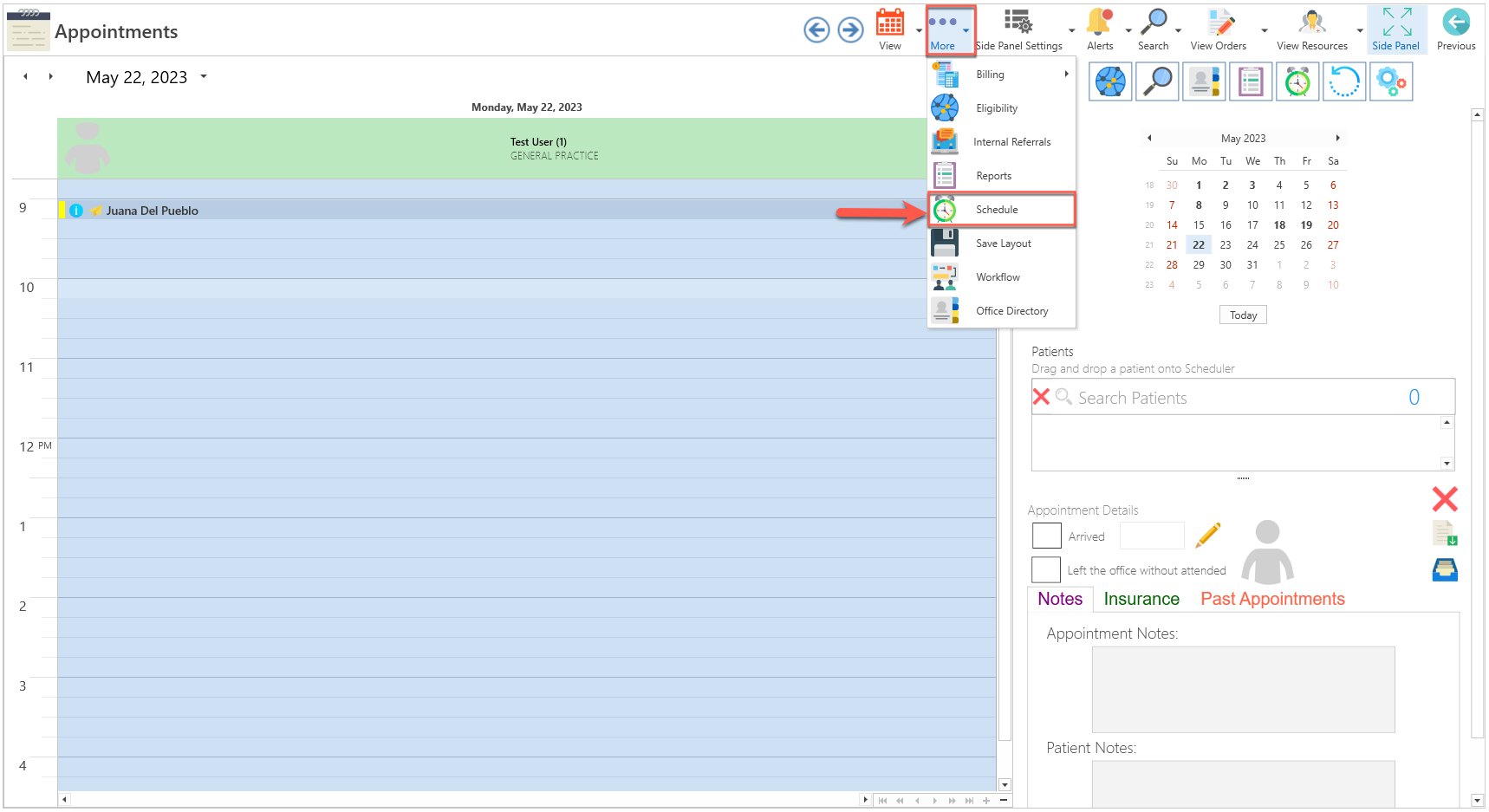 - Press the Schedule button from the Side Panel section on the right side of the screen.