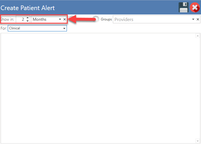 - Luego, escriba la alerta del paciente en el campo de notas.
