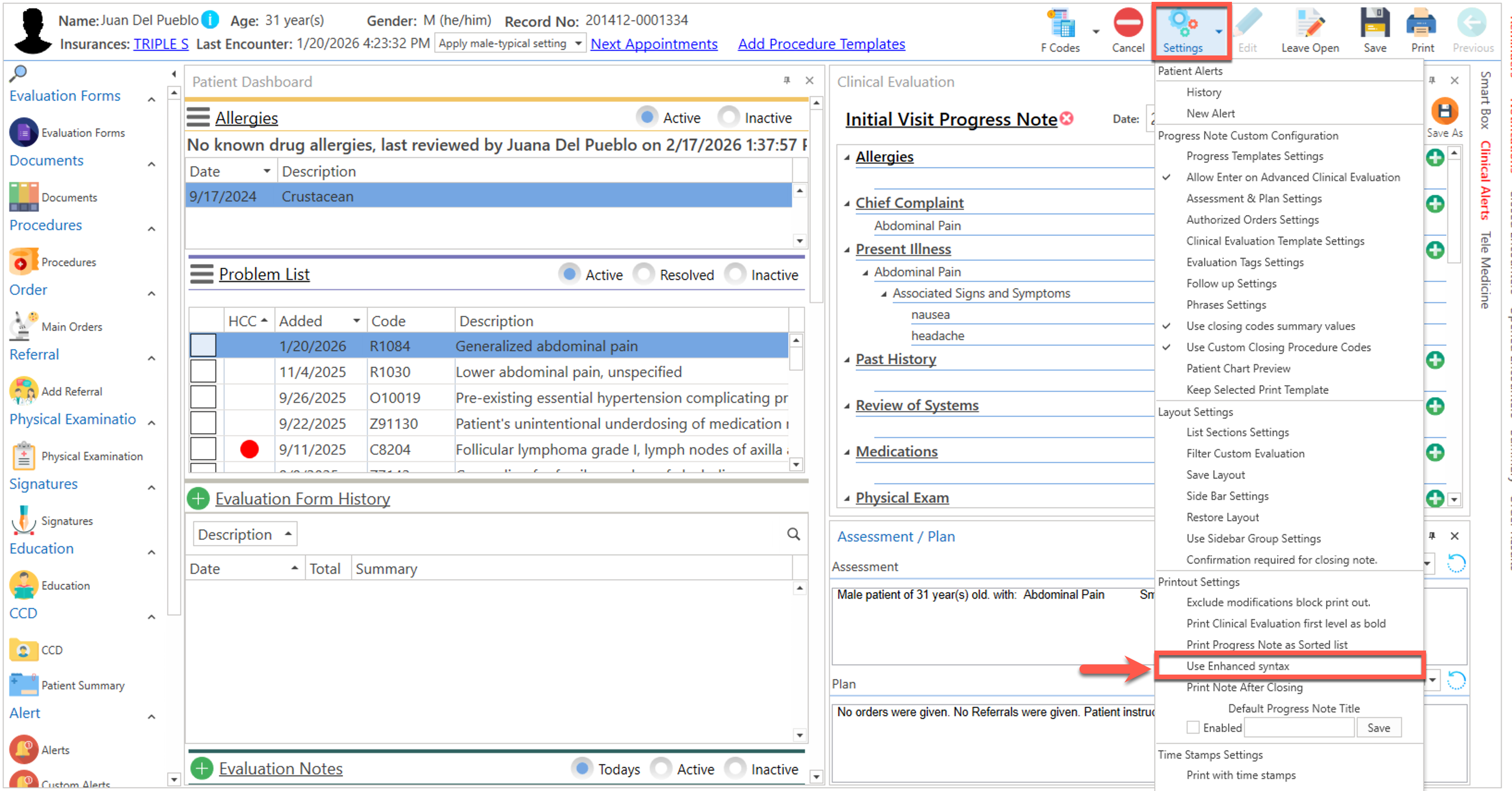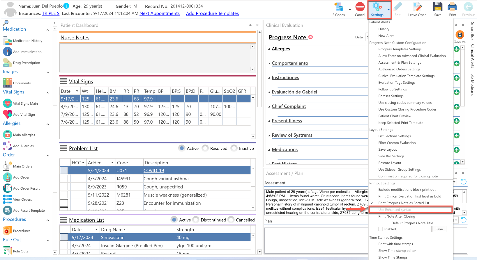 - Preguntas Frecuentes: Advanced Progress Note / Settings / Use Enhanced syntax