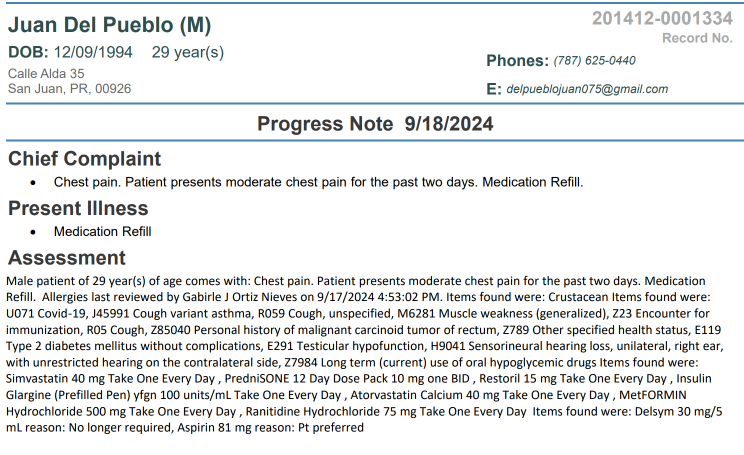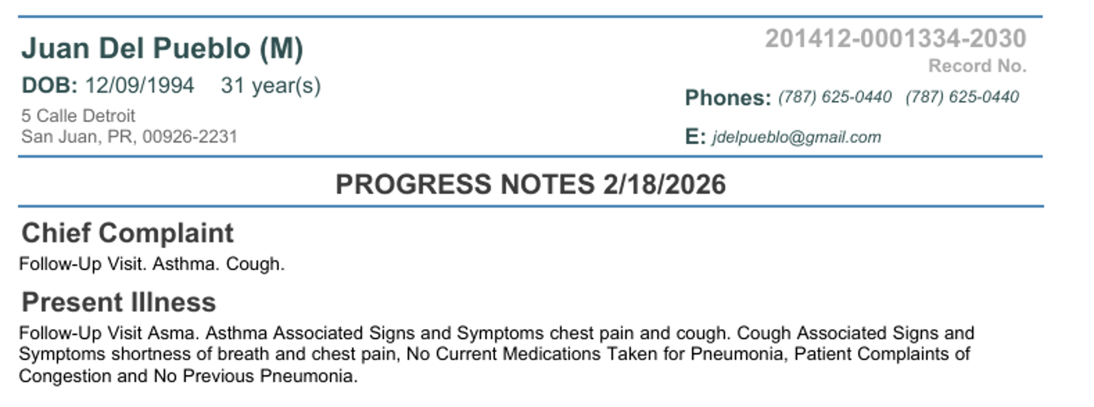 - Seleccione el paciente desde cualquier sección de la pantalla de "Clinical Records".