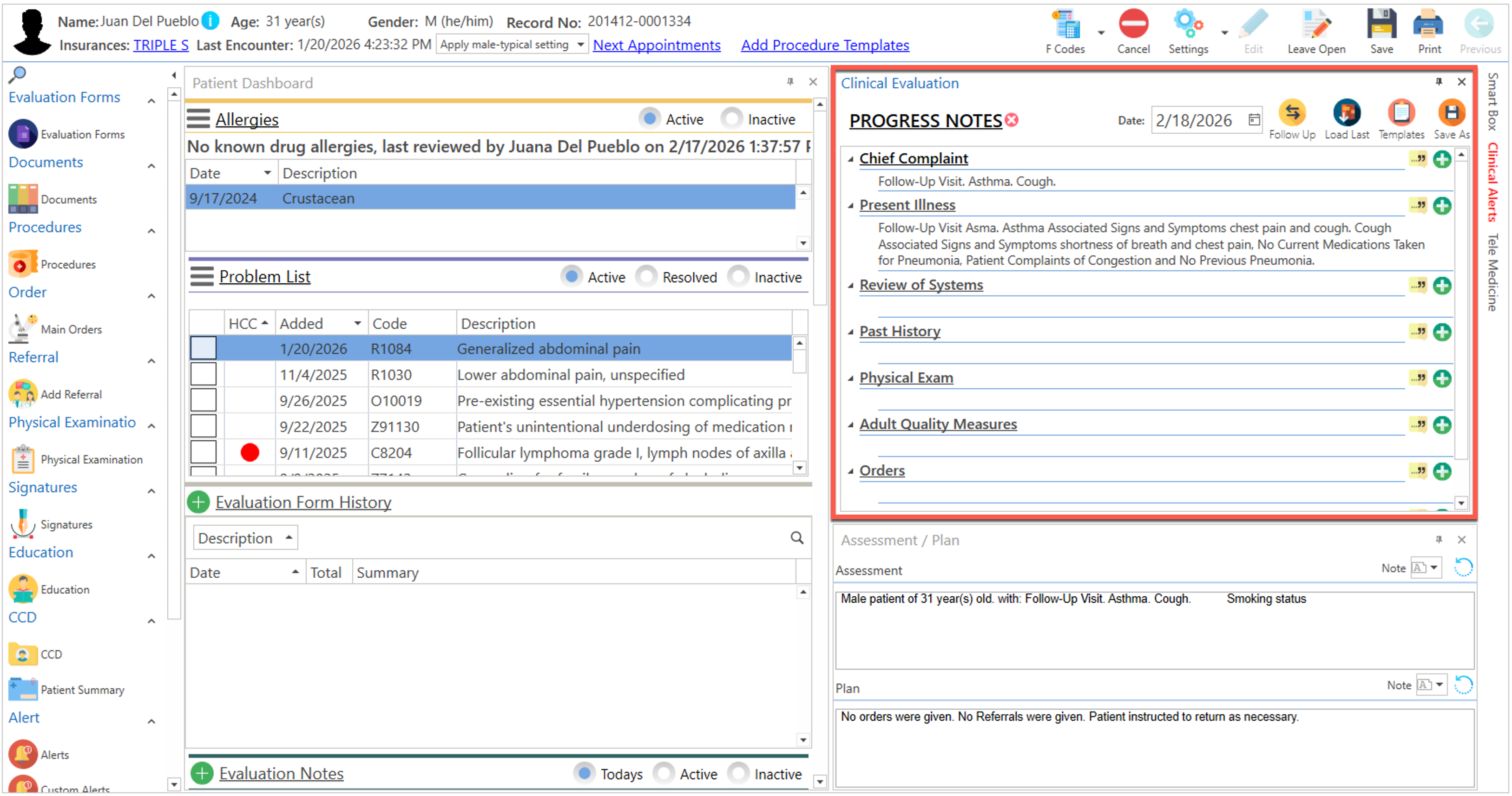 Al seleccionar esta opción, permite que el texto en la sección de "Clinical Evaluation", salga en forma de sintaxis. Debe seleccionar la opción, antes de comenzar la evaluación clínica del paciente.
