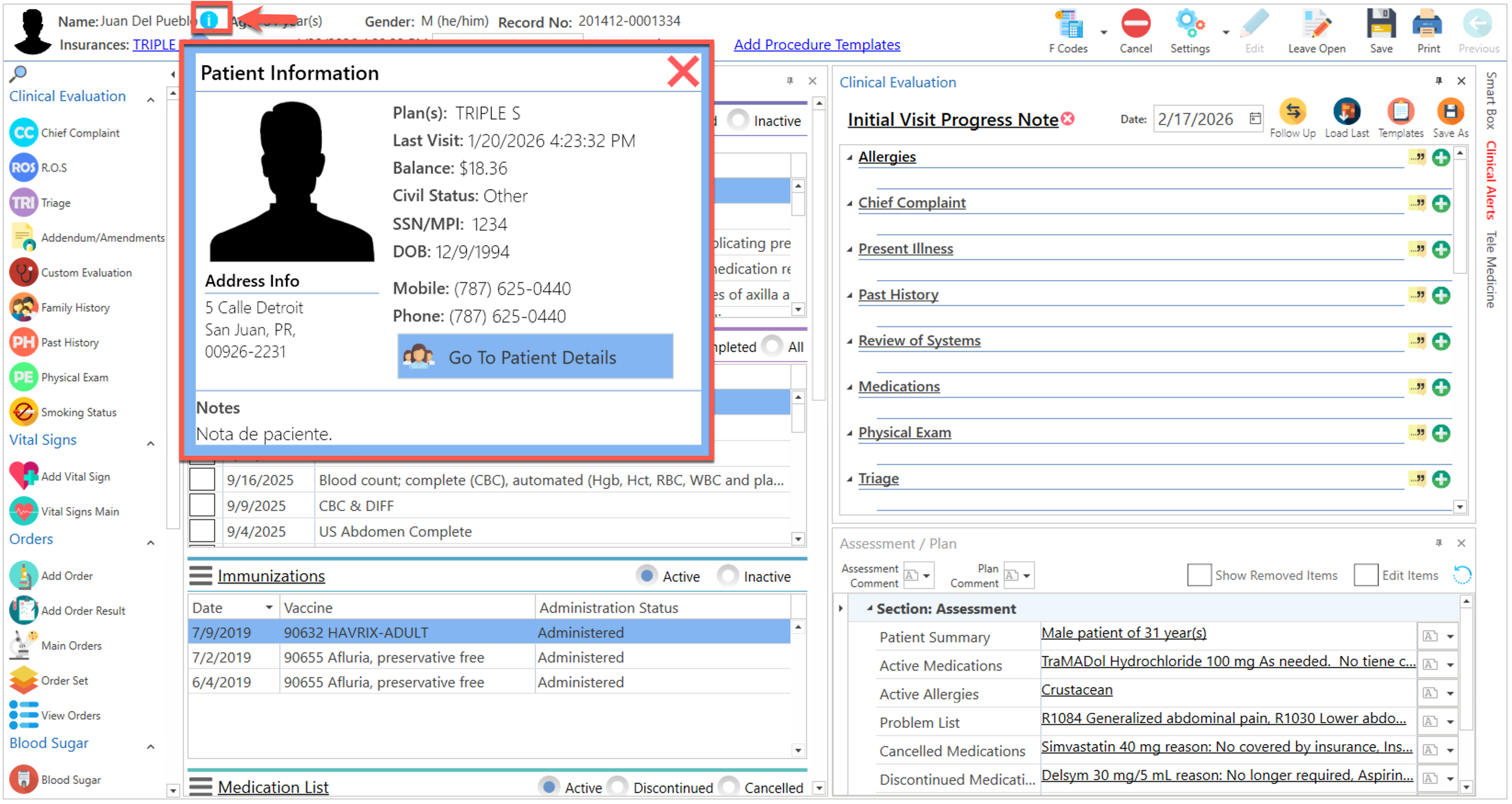 - Immunizations: Vacunas del paciente.