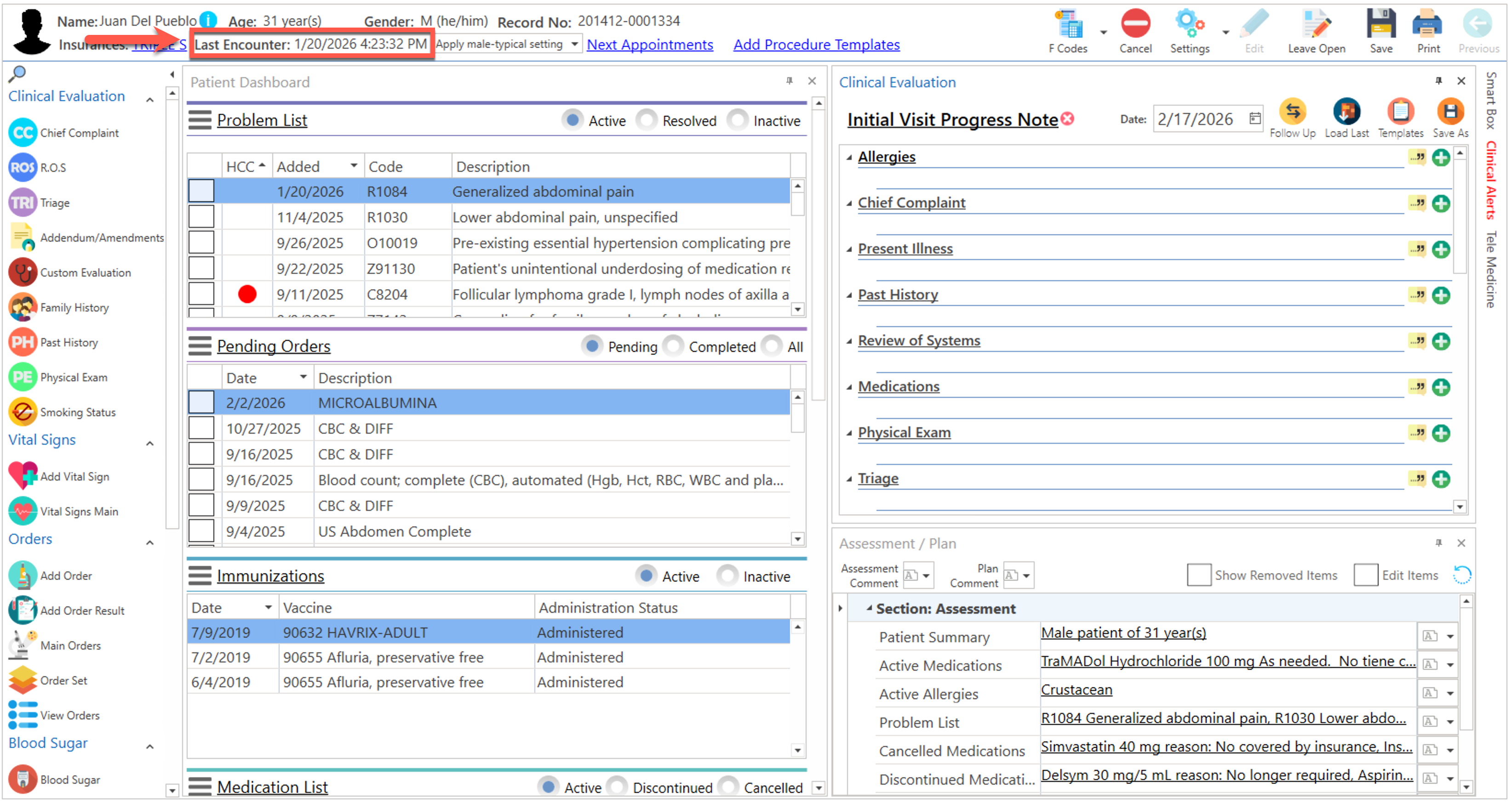 - Last Encounter: Despliega la fecha del último encuentro del paciente.