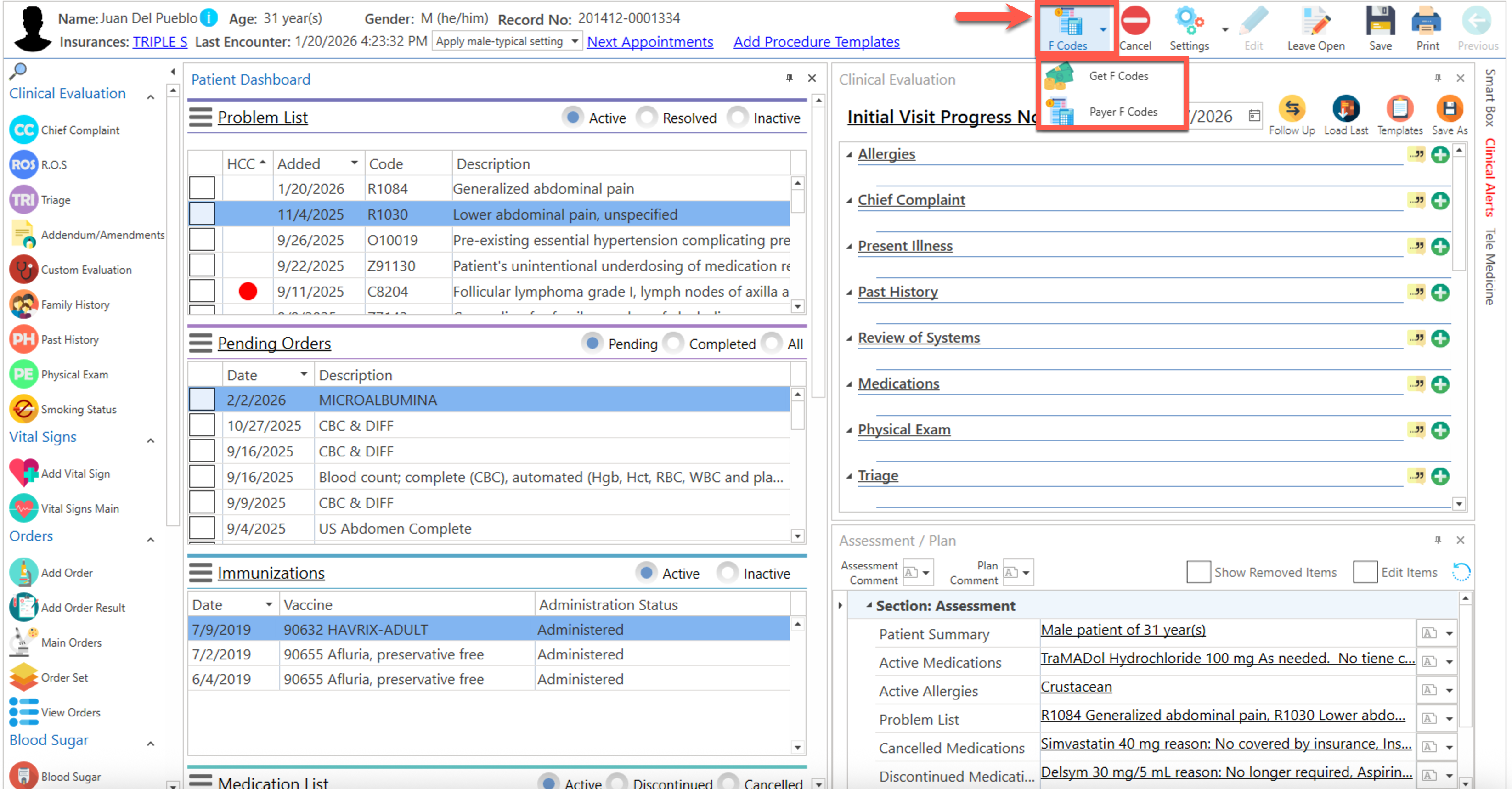 - F Codes: Permite agregar los códigos "F", a la sección de "Encounter Procedures", que apliquen según diagnósticos, registros de vitales, entre otras.