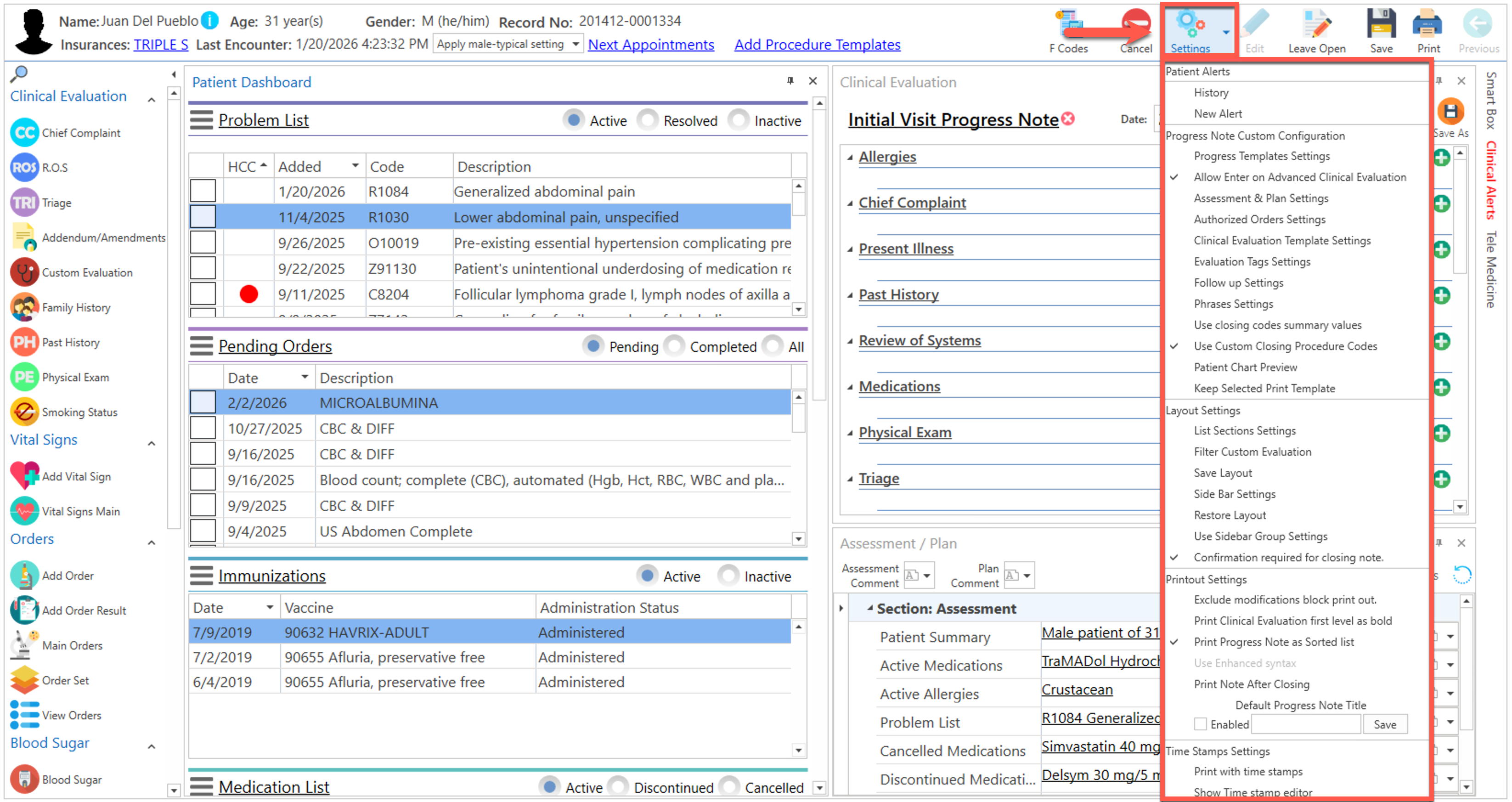 - Settings: Permite personalizar la pantalla de "Advanced Progress Note" según sus necesidades y preferencias.