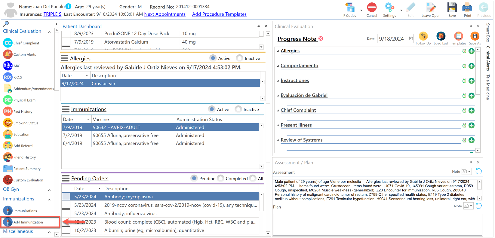 - Conociendo el área de: Advanced Progress Notes / Immunization