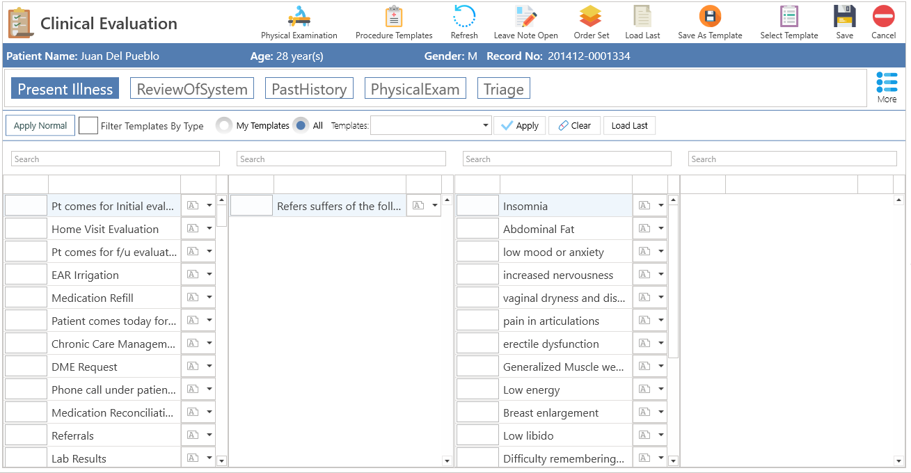 • La información guardada, se desplegará en la pantalla de "Advanced Progress Note", en la sección de "Clinical Evaluation".