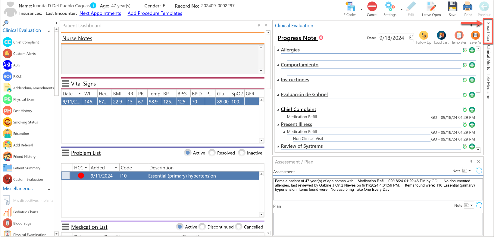 - El proveedor también podrá documentar, desde la sección de "Clinical Evaluation".