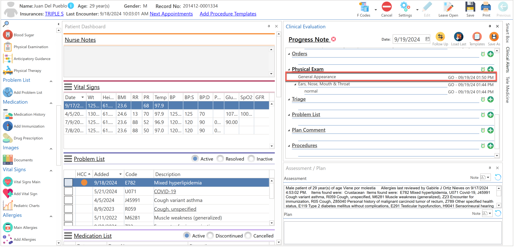 - Presione el botón de "Physical Exam", localizado en la sección del "Side Bar".