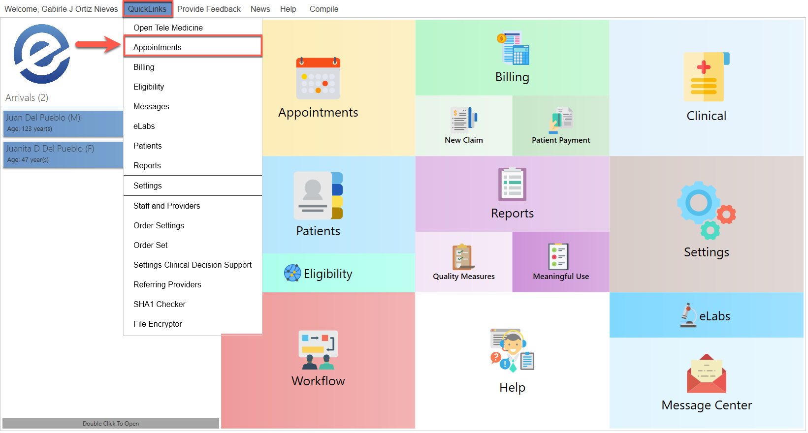 - Seleccione la opción de "Appointments".
