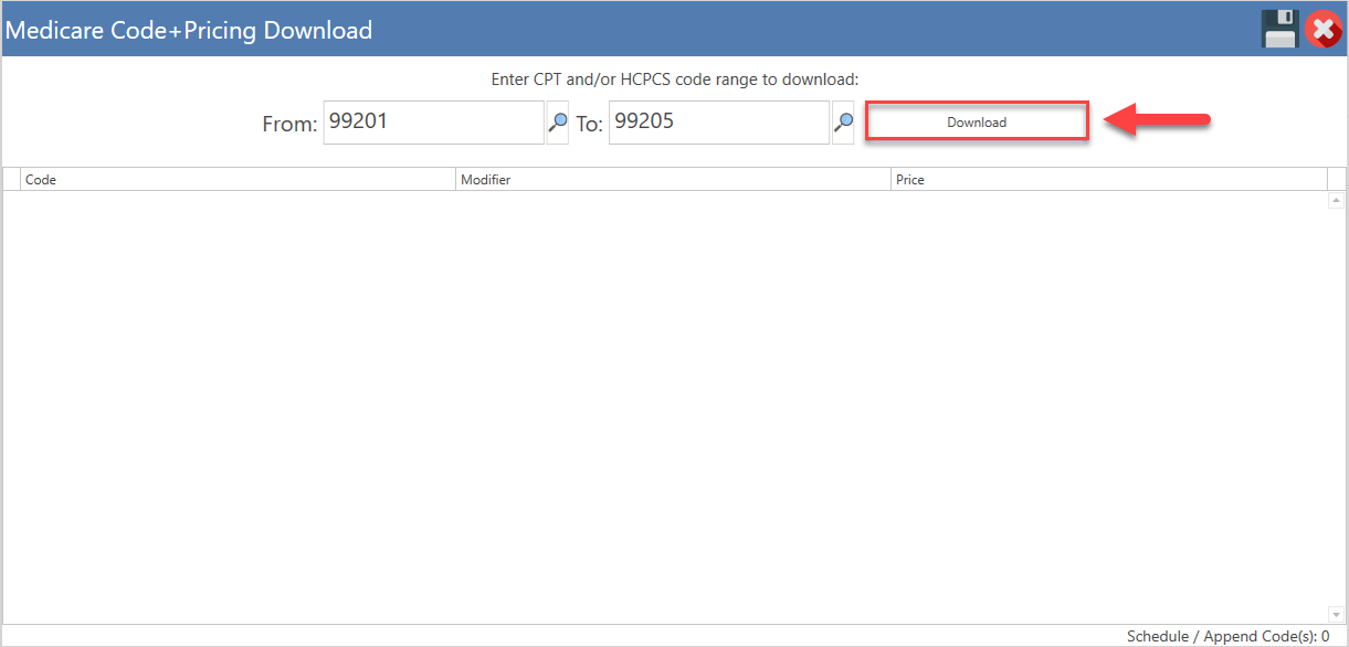 - Seleccione la opción de "Append Medicare Codes + Rates".