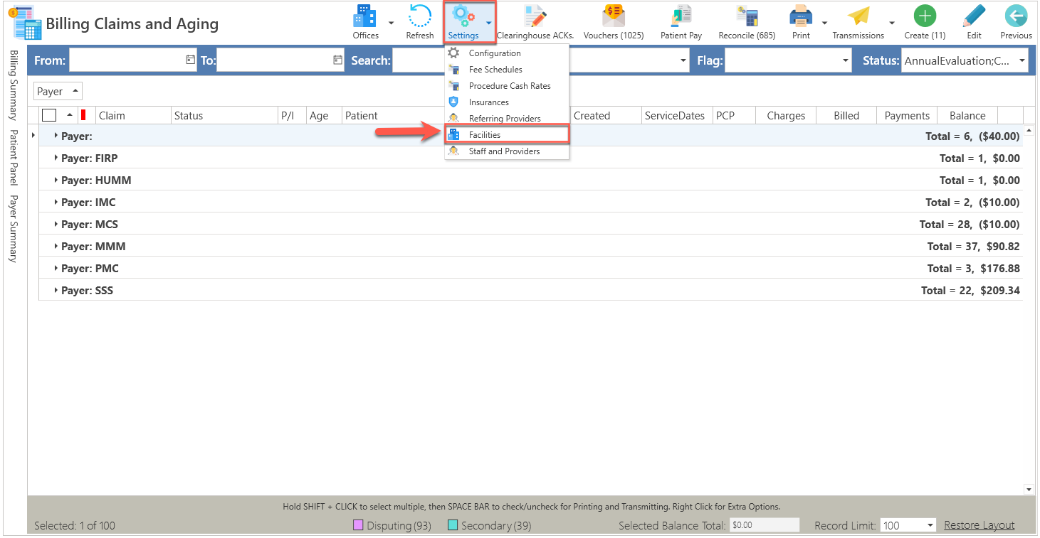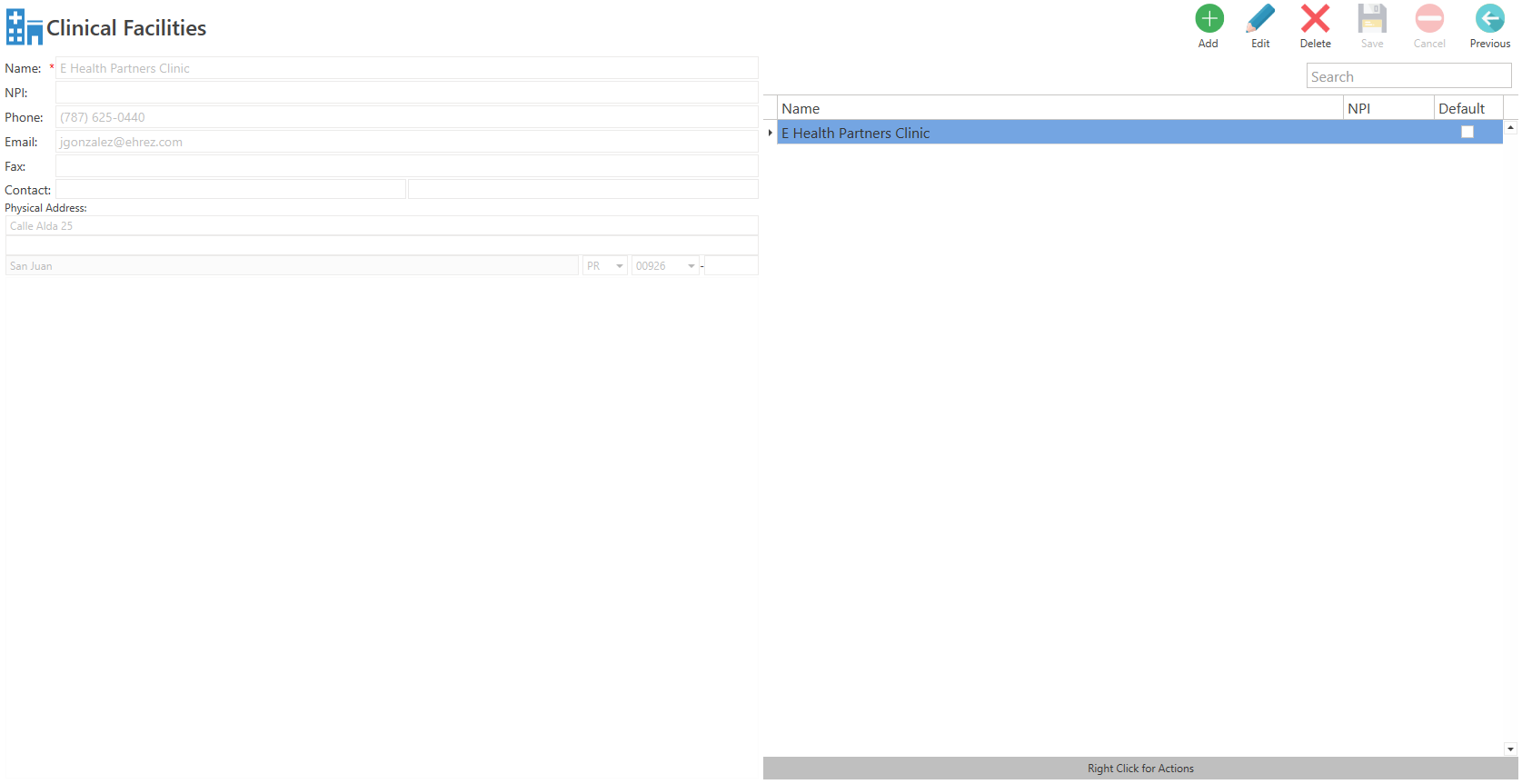 - Presione el botón de "Clinical" y luego, seleccione la opción de "Facilities".