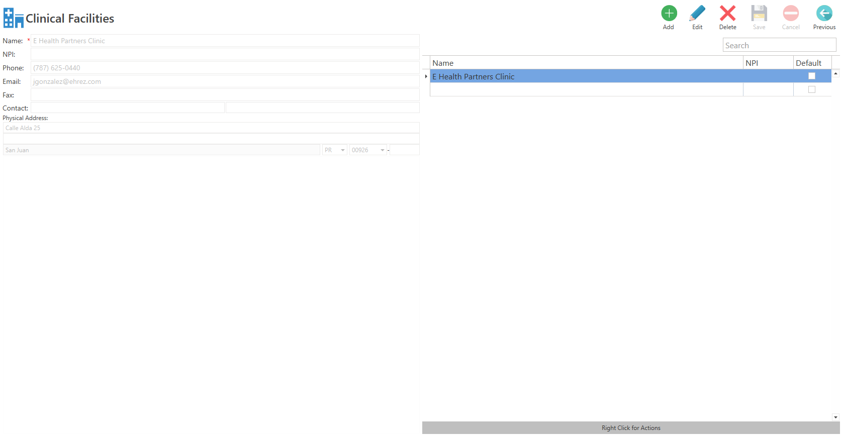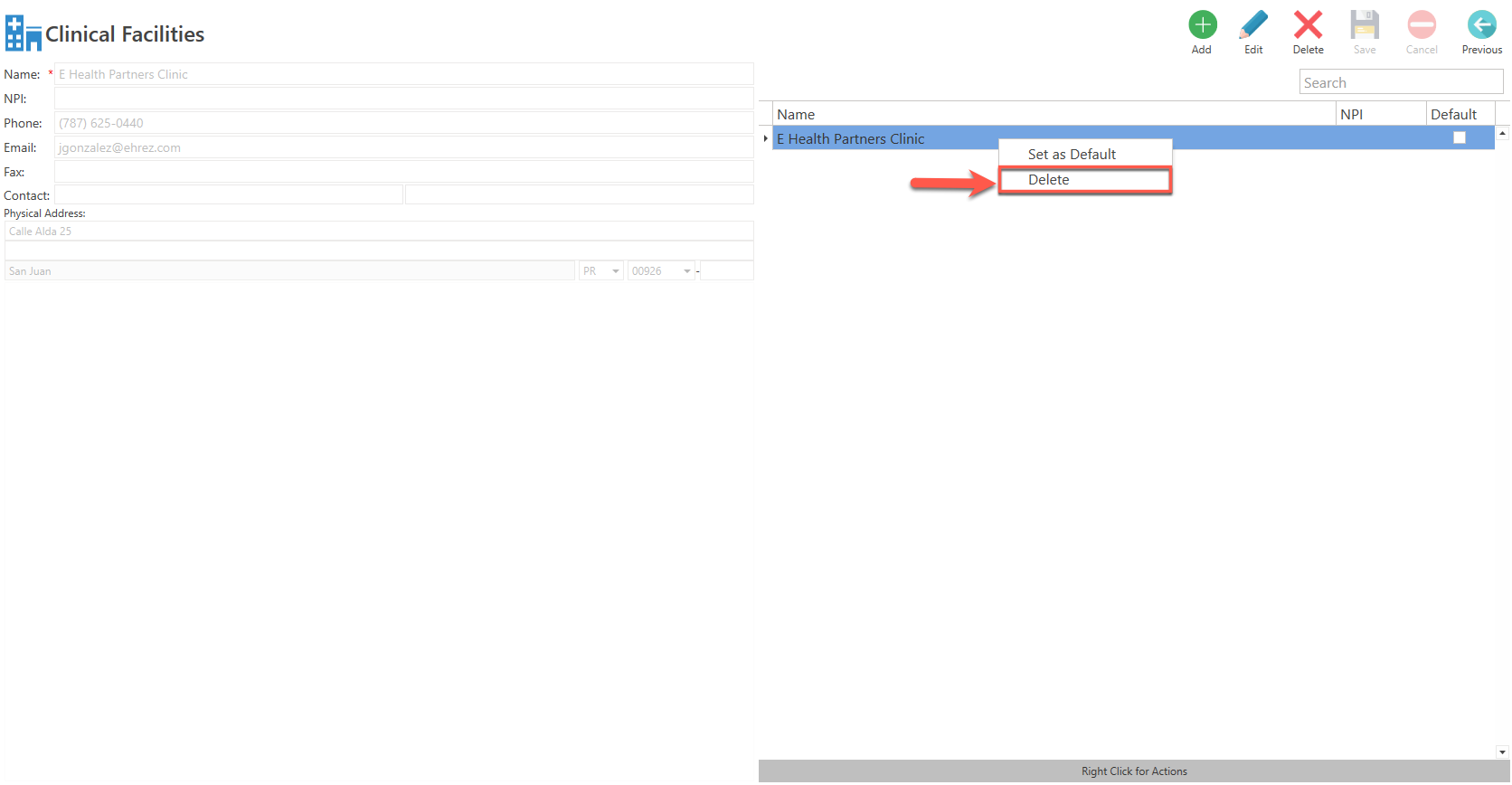 - Presione el botón de "Clinical" y luego, seleccione la opción de "Facilities".