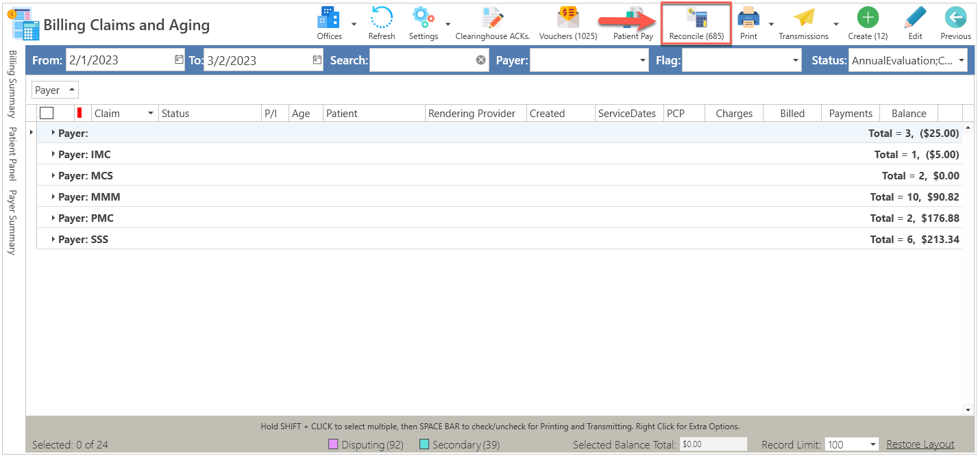 - Presione el botón de "Previous", para regresar a la pantalla de "Reconcile Insurance Payment".
