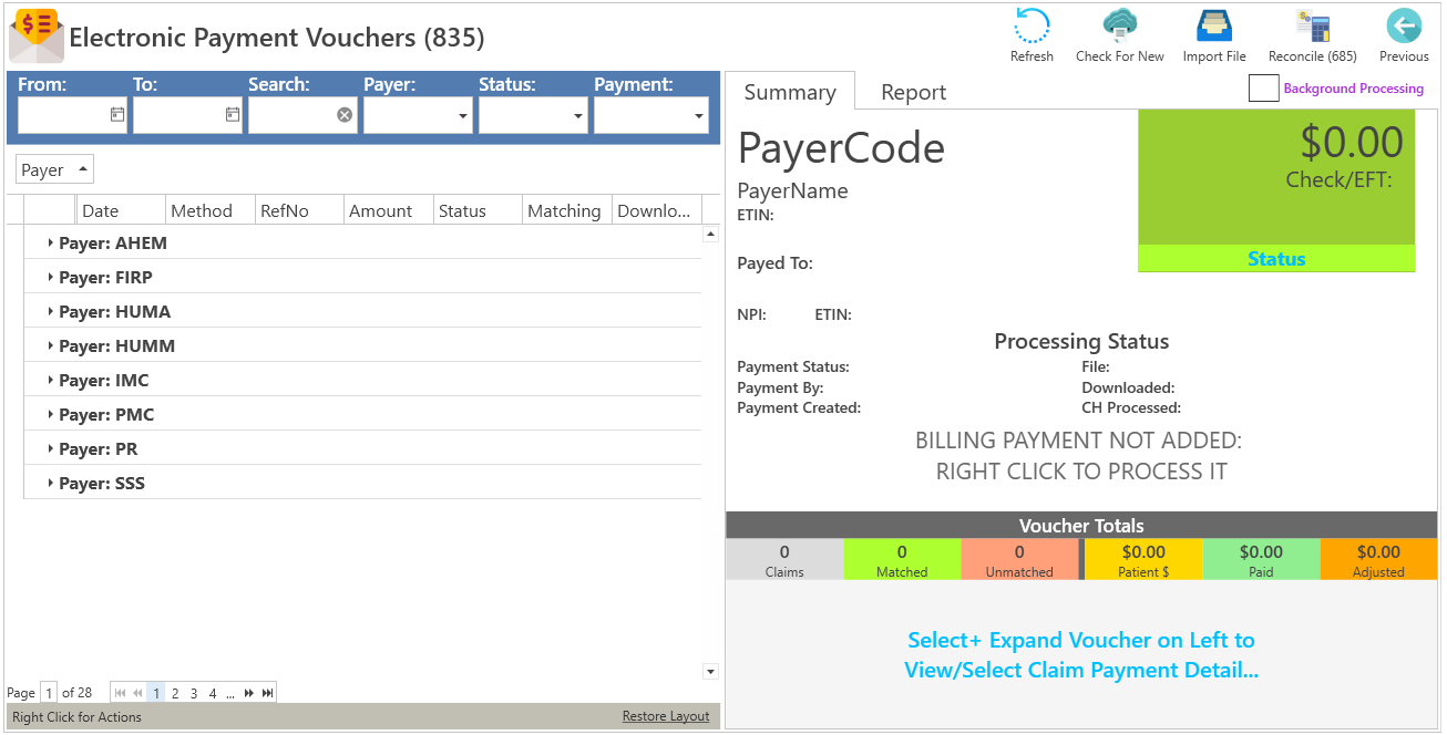 - En la pantalla de "Electronic Payment Vouchers", presione el botón de "Reconcile", localizado en la parte superior.