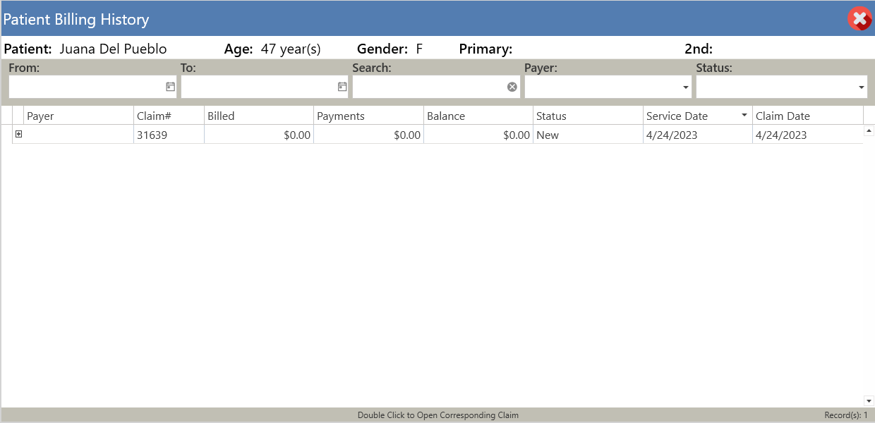 - Para acceder al historial de los pagos del paciente seleccionado, presione el botón de "History Billing".
