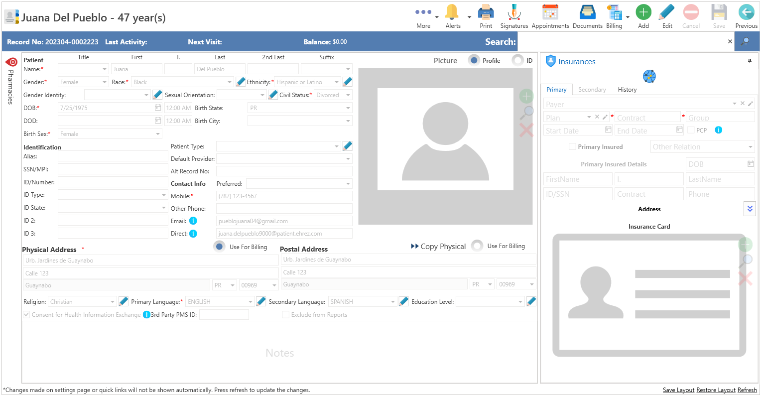 - Se desplegará la información de facturación del paciente seleccionado: