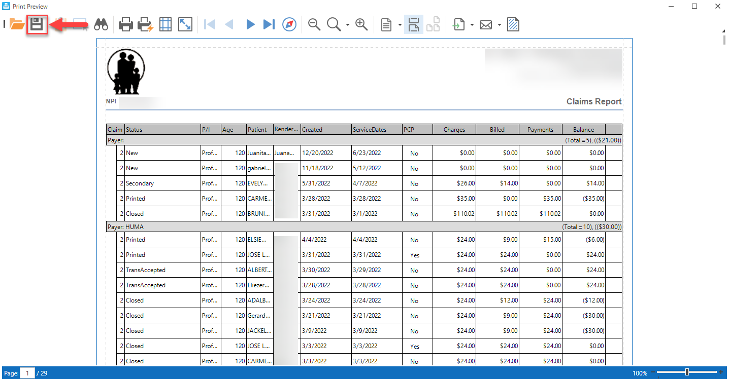 Existen varias opciones, para imprimir un reporte de reclamaciones.