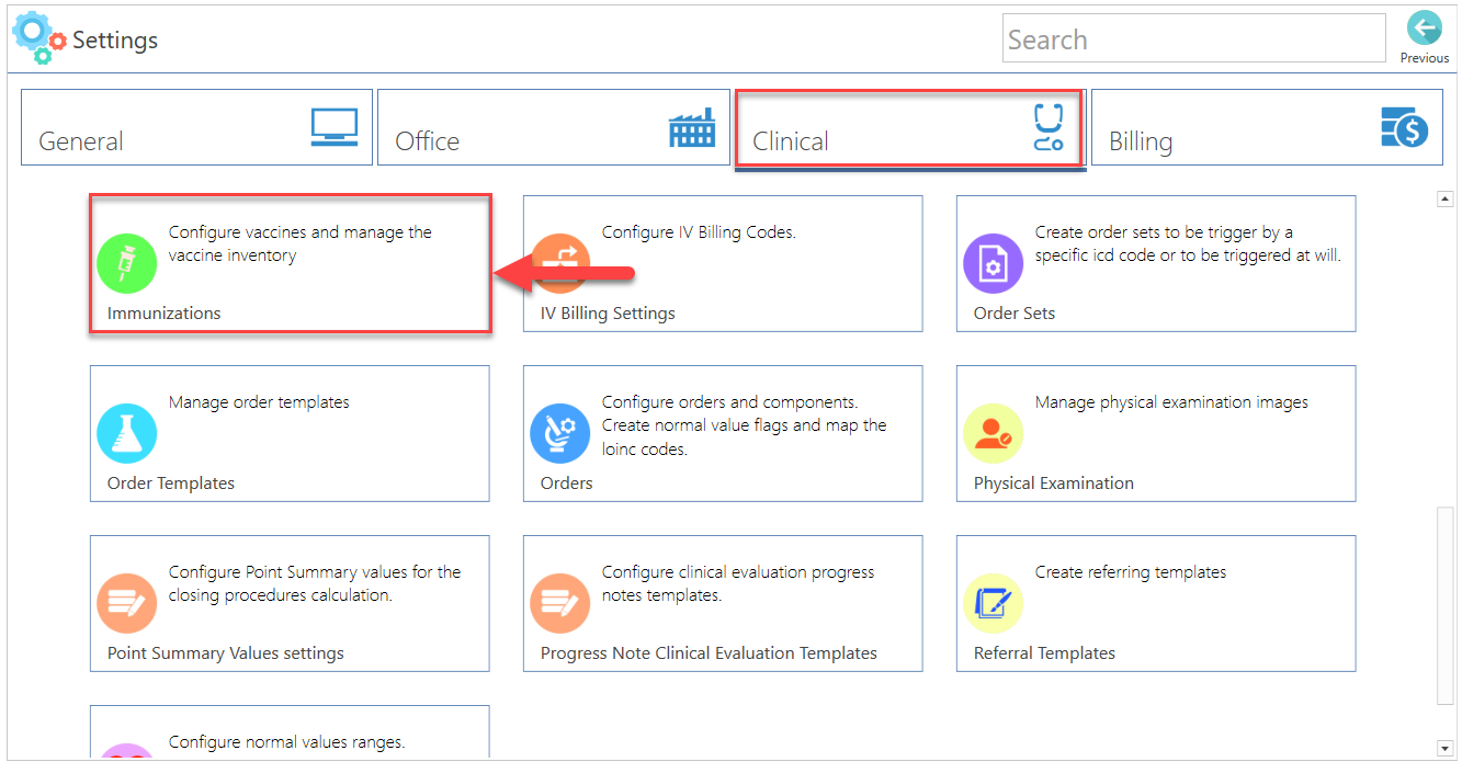 - Conociendo el área de: Settings / Clinical / Immunizations