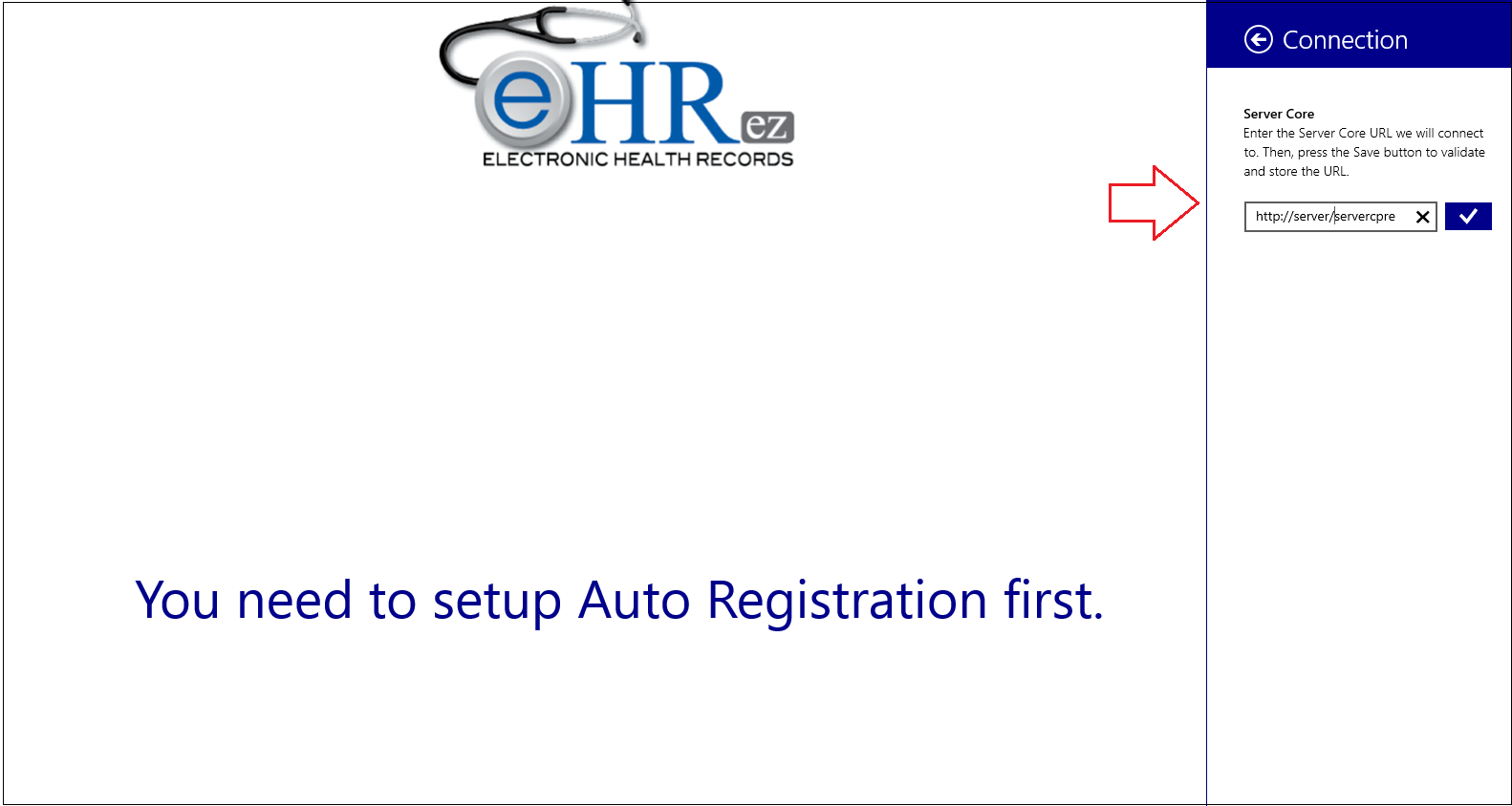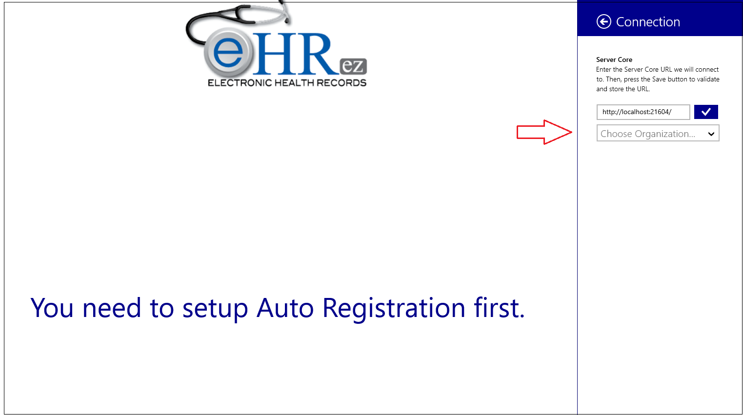- Al subir la aplicación de auto registro, por primera vez, se le desplegará la siguiente pantalla: