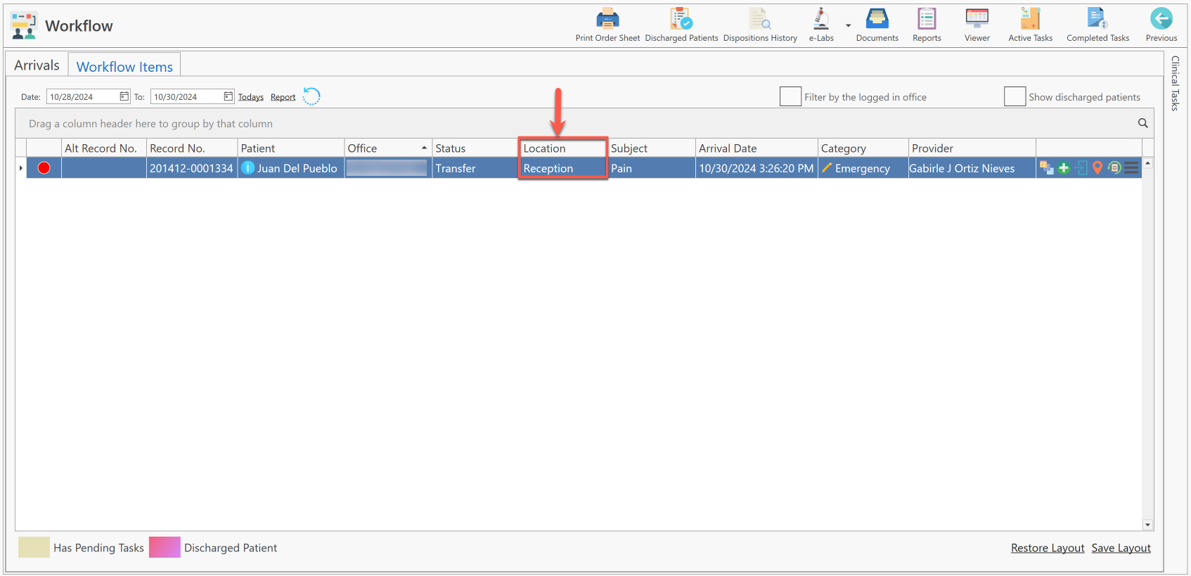 - Se desplegará el cambio de la ubicación del paciente automáticamente.